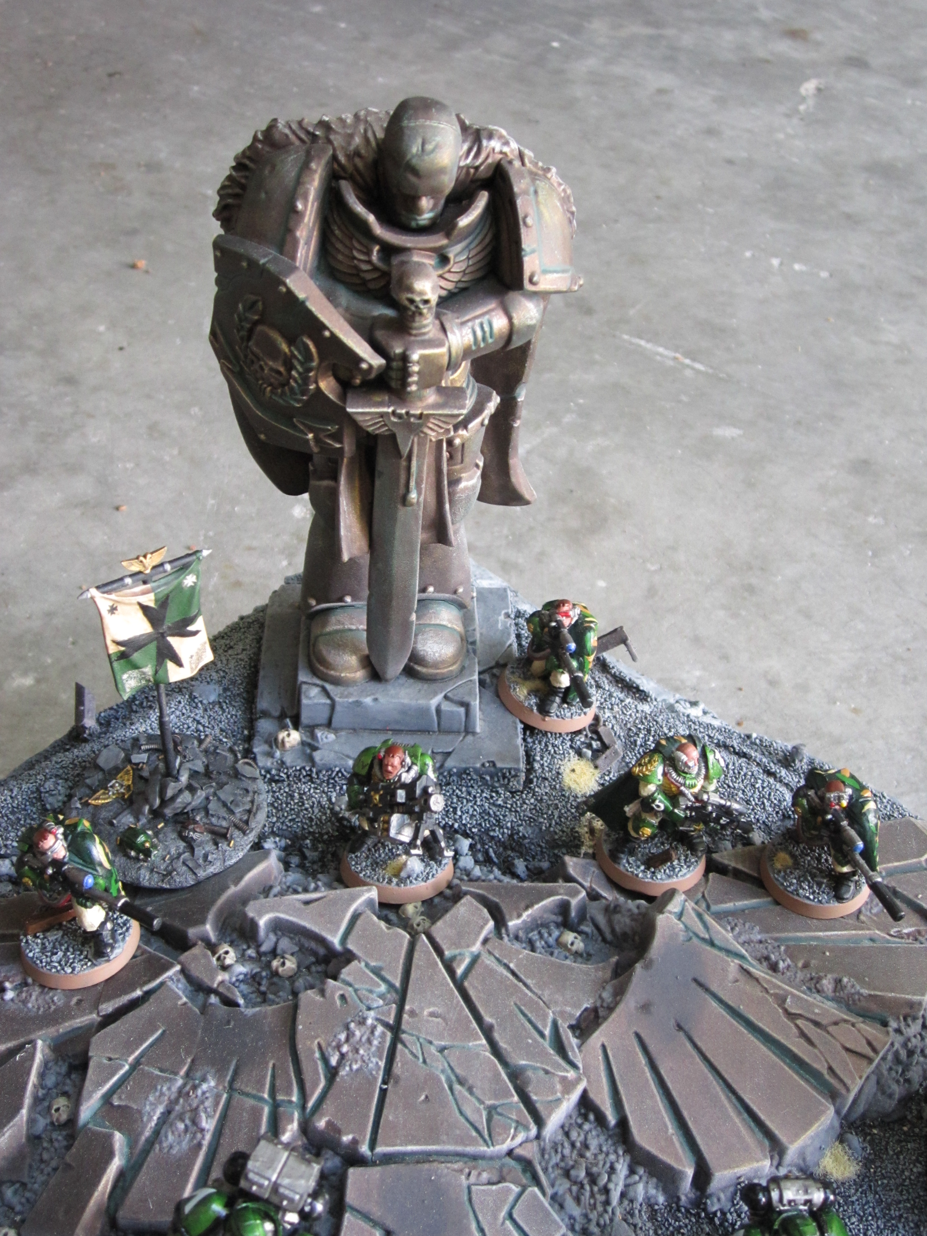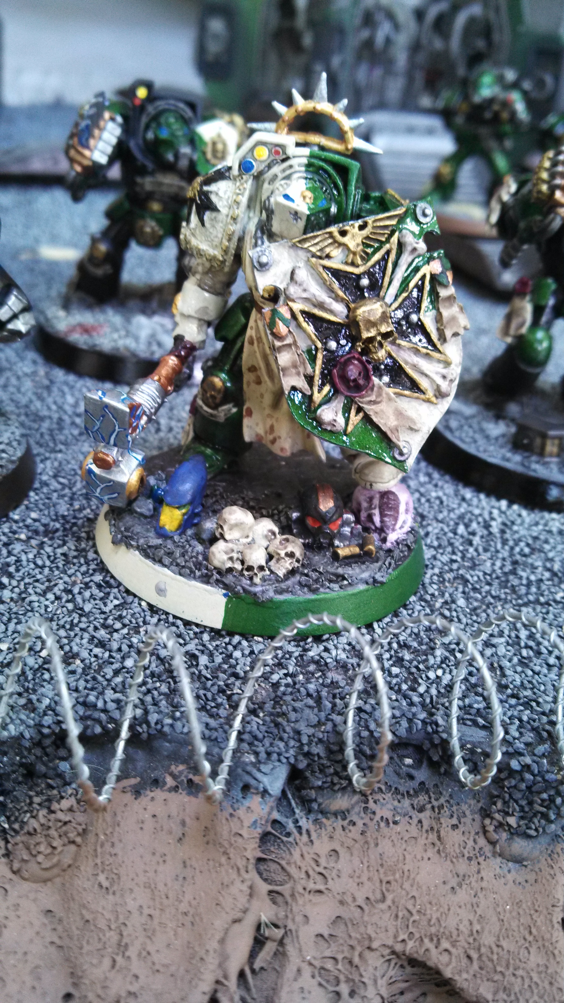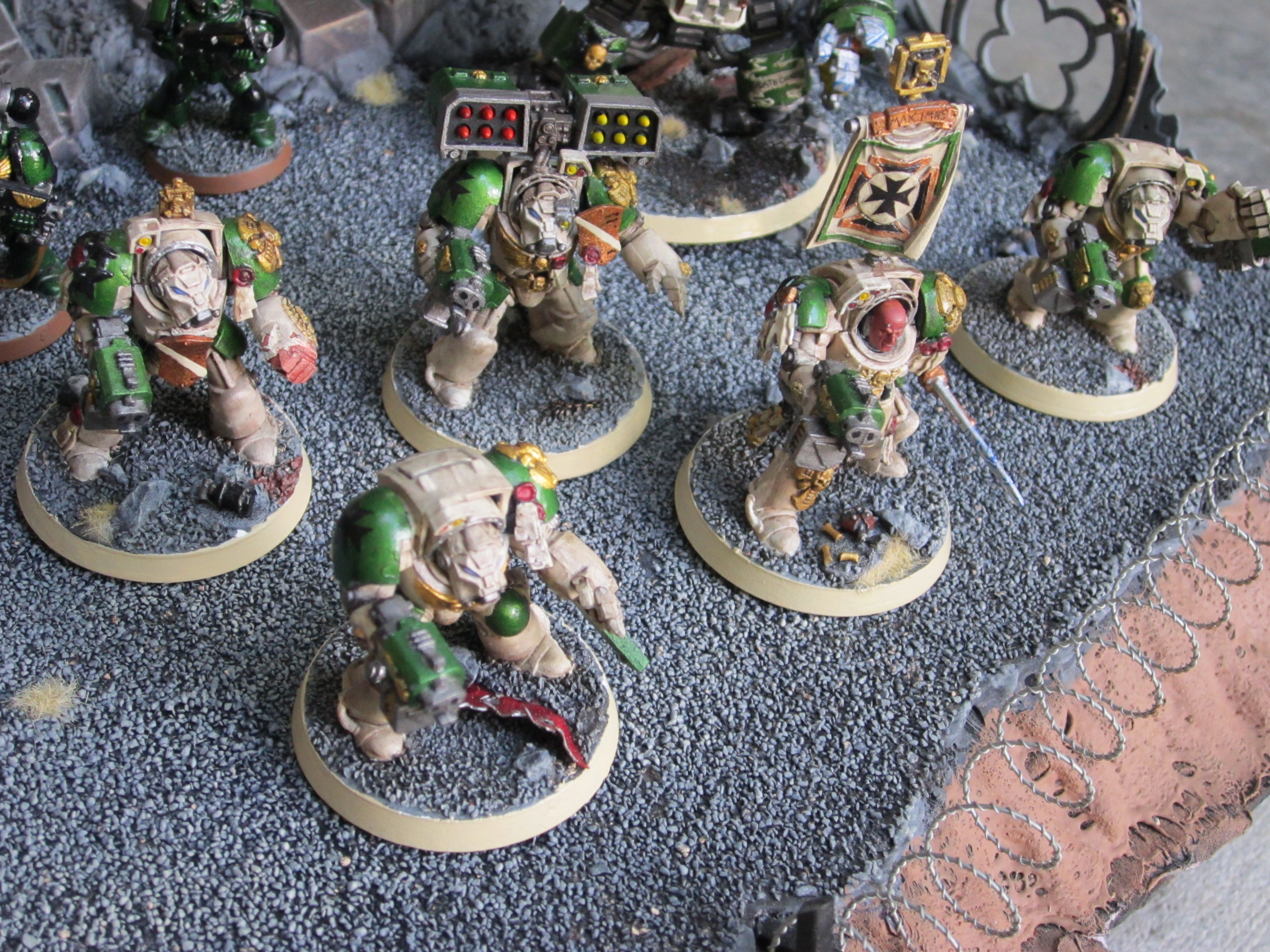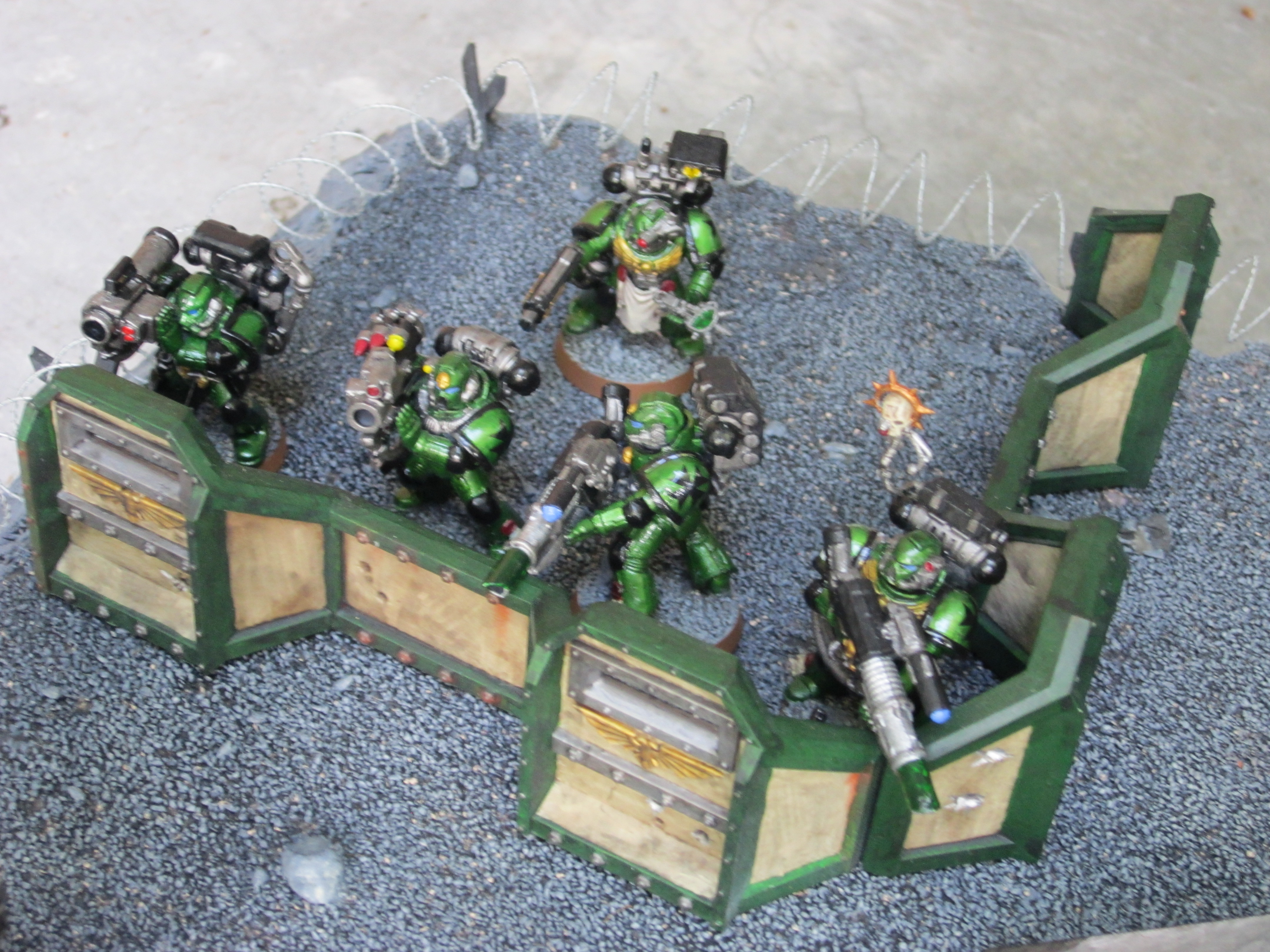 This is my attempt at my own Chapter colors. I went for green and BT iconography; sort of "hidden BT descendant chapter" kinda idea. I tend to jump between codexes ( SMs, BTs, and DAs).