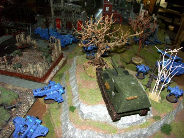 The Black Templar forces were embroiled to the north, managing a fighting withdrawl against the Ork WAAAGH storming down from the mountains.