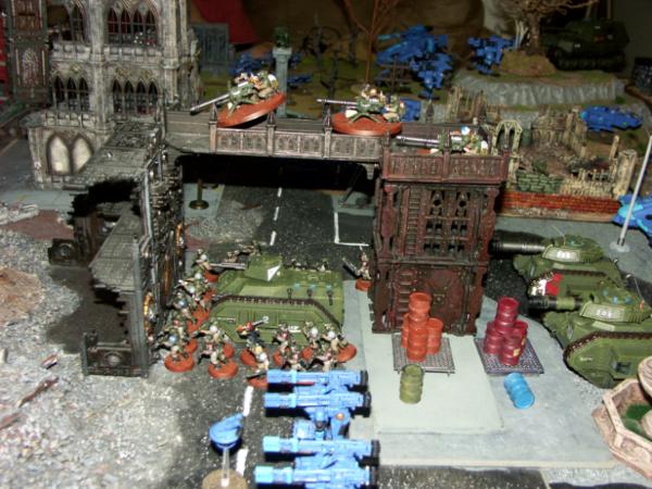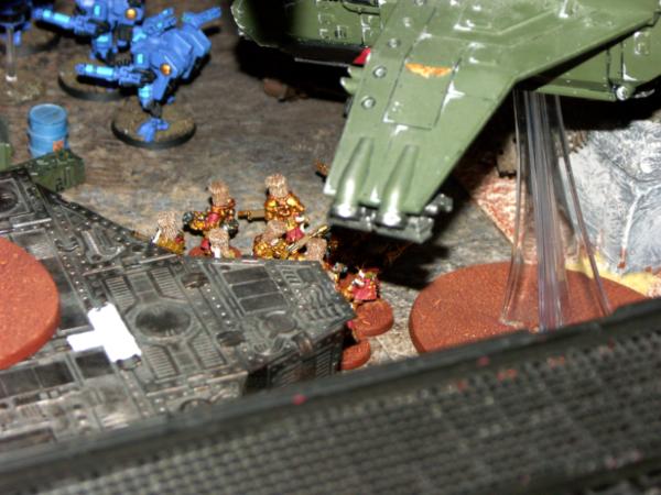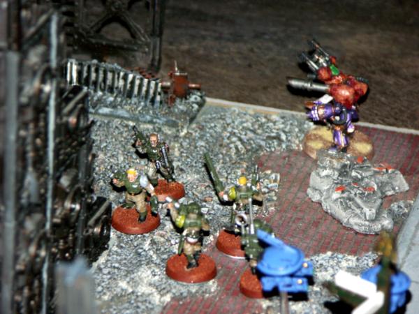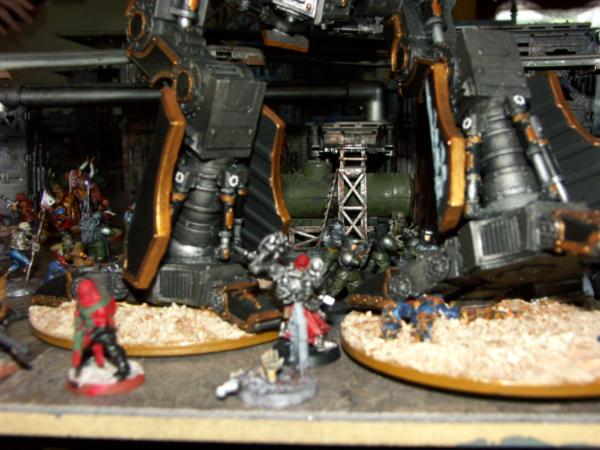 Reports indicated that Chaos had formed up many massive warmachines for embarkation to their fleet, and that the heavily defended spaceport was awash in their cults of decay and plague. Vidcaps even indicated that the captured God Machine, Velox Venator was present, having been claimed by fallen tech Priests and reconstituted to the purposes of Chaos. The Imperial Army and the Tau agreed that their primary goal was to secure the landing pad and prevent the Chaos forces from reaching their fleet, and also to dismantle and/or capture as many of the heavy war machines of Chaos as they could to prevent them being added to the siege that would doubtless follow.