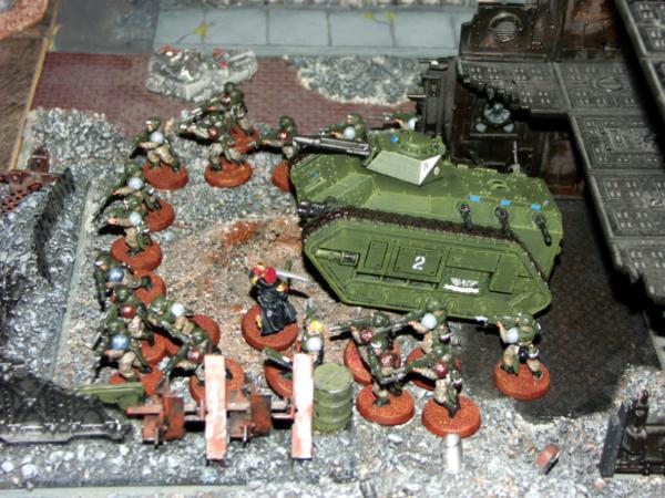 2 - 10 man Infantry Squads, Commissar (Power Sword), Sarges (Power Mauls).