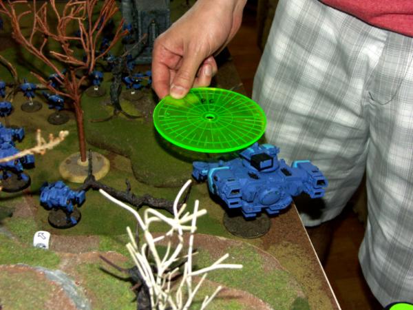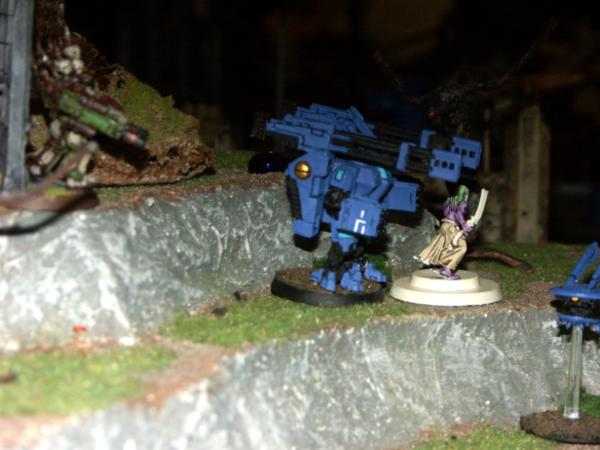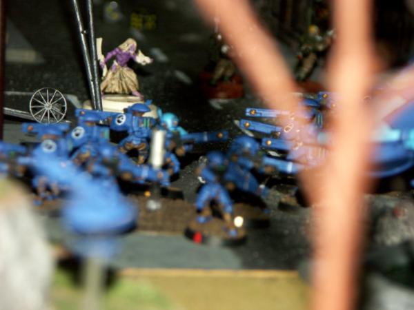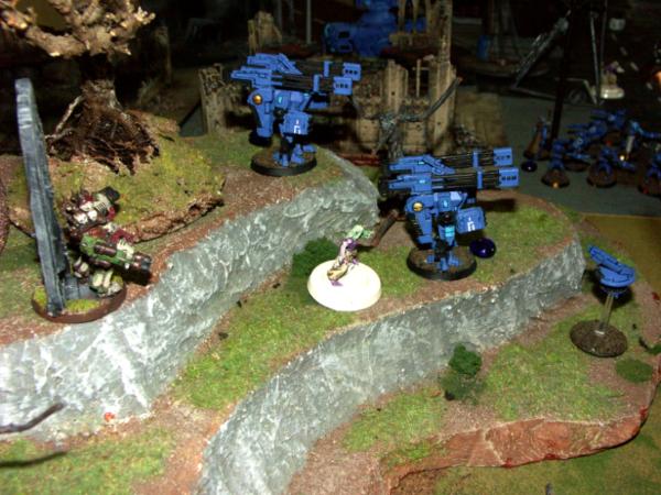 Unfortunately, with all of the Tau vehicles getting a ubiquitous 4+cover save, you got all of the attention first, being the easier one- shot kill. That said we were still unable to rid ourselves of the main IG threat: the redoubtable Captain Paget.