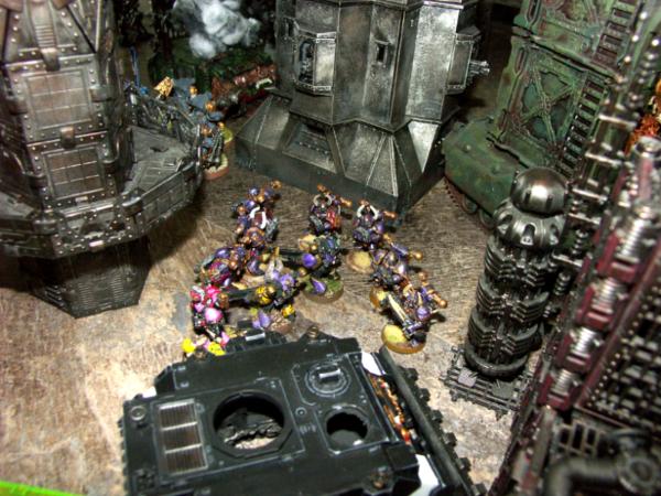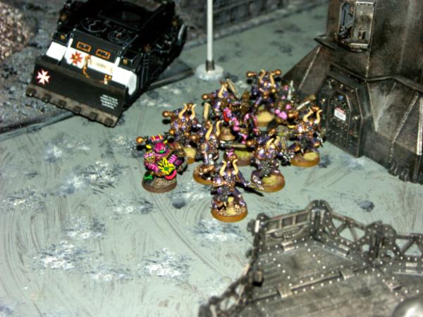 Right there by the Bastion on the right, just edging in, Slaanesh Noise Marines, FTW.