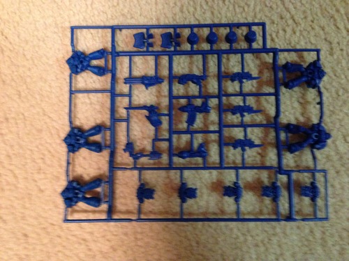 I recently received a number of bits I got on eBay. Among them were two sprews with missile launcher marines, however they are blue plastic. I don’t recall ever seeing blue sprews, does anyone know how old they are?