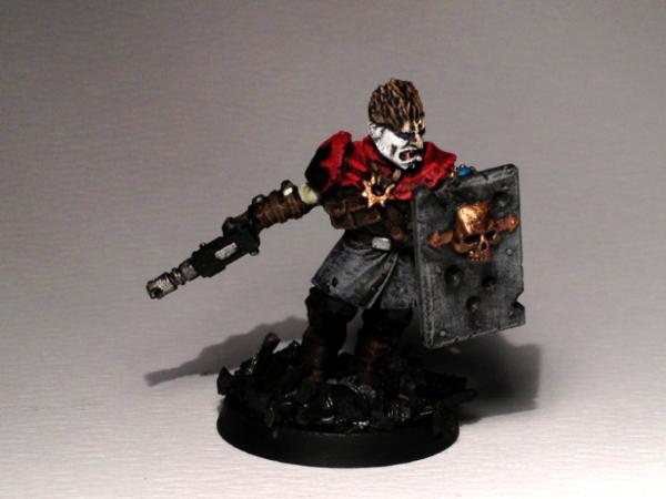 Yes, this crazy oni mask. The arm was redone, and the shield again came from the depths of my bitz box. I think it belongs to a tank. Not sure, though.