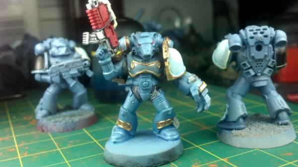 Gitsplitta had put out the call for someone looking to do a quick and dirty Great Marine Swap. Gits had a Librarian in Jump Pack painted for his Mantis Warriors and was looking to swap it for a basic boltgun marine. I immediately jumped on this, as a