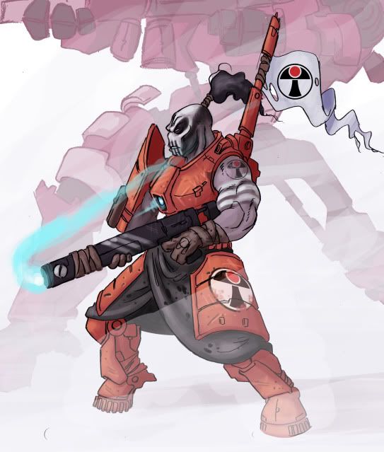 Well, we were thinking along the lines of Commander Sa'tan going rogue in order to destroy all threats. Scorched earth, execute the survivors, destroy the enemy infrastructure. Basically making himself everything the Tau don't like in order to secure ultimate victory for the Empire. Except somewhere along the line he starts thinking of his way of warfare as the right way of doing it, dragging his troops into a ever deepening abyss of madness and slaughter.