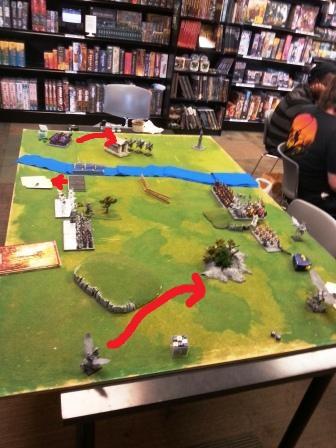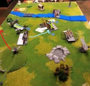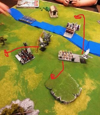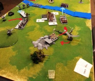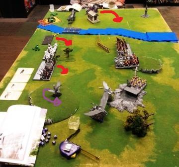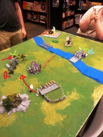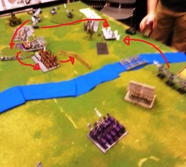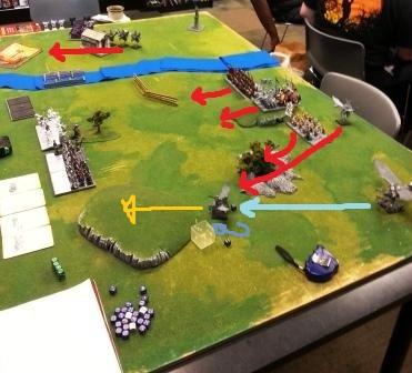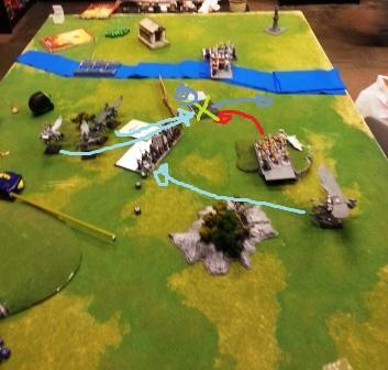 Picture Key Red Arrows: Movement Blue Arrows: Charges Orange Arrows: Flee Green Xs : Units destroyed Purple : Reforms Dark Blue: end of combat moves