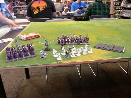 So, the other Knight my friend Myelinated Axon thew together some fun lists for our armies and played a game. To keep things interesting we decided to do a Battle Report, since I have not actually done one before! Before we get underway, I apologize ahead of time that some of the pictures are blurry (lesson learned that I need to take a bit more time aiming my camera in the future ) also neither of the armies are finished, and the Demigryphs were being proxied with bases while MyAx is gap filling on the models.