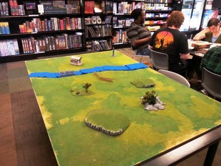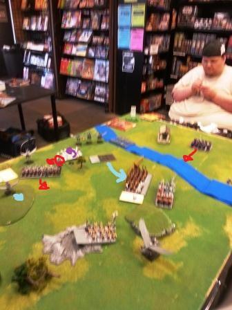 I also think its interesting that our lists are so similar. We've both got 1 Horde, Skrimishing Archers, Knights, Monsterous Cav, and Heroes on Pegs. Pretty crazy! I'm thankful MyAx didn't bring his 2 cannons today, but at the same time Lore of Heavens is very effective against my build. The Board So we've got a river running down the side, 2 Mysterious Forests, and a Fence in the middle. I'll keep you updated on what the Forests / Rivers are as we discover them!