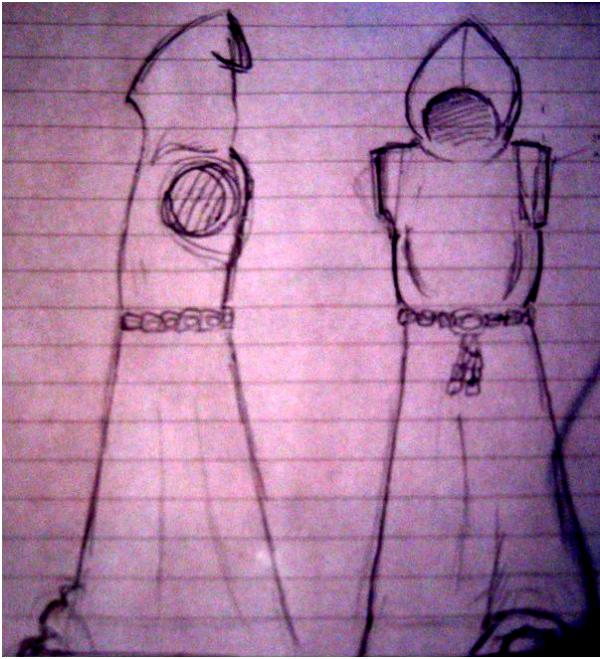 To this end, I began drafting, and I came up with an idea. My idea was, to create a robed, hooded character, with several arm options on one, basic body.