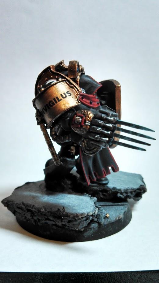 FLGS do a modelling and painting day every second Saturday of each month. On those days everyone also generally brings in ALL their bits for trades and kit-bashing help from the better modelers. It was there, on a few of these days, that I slowly gathered the pieces I desired. There was a massive influx of dark angels at my store a while back and I acquired a great looking robed terminator torso in exchange for a melta-gun and a flamer. I then got legs from another