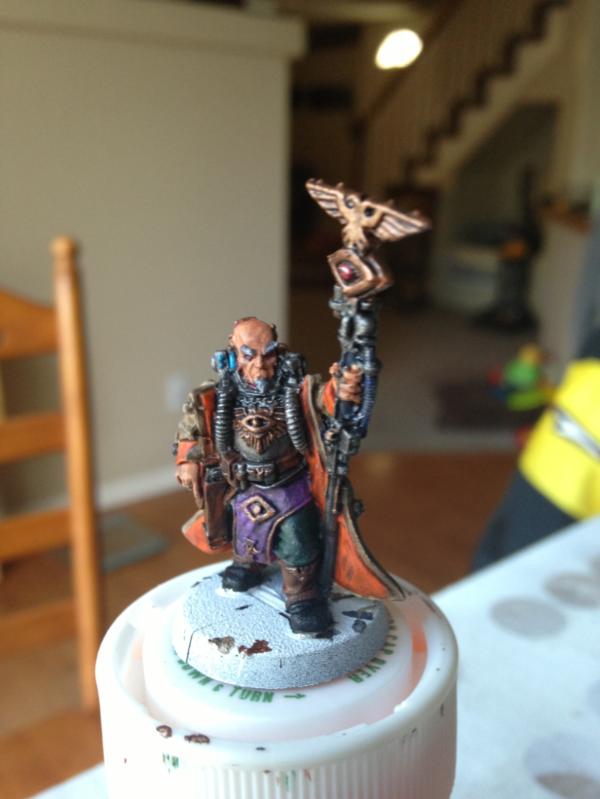 My first post on Dakka, and I'm looking for any tips I can get from you guys! I finished painting this guy last night, still need to base him, but it's my first ever attempt at highlighting using methods other than straight drybrushing and line highlighting. After I basecoated and washed him I used multiple layers of watered down paint on the cloak, head and pants to try and blend up to a highlight. What do you guys think? Any tips or tricks other than loads of patience?