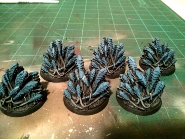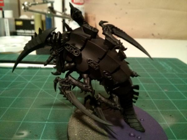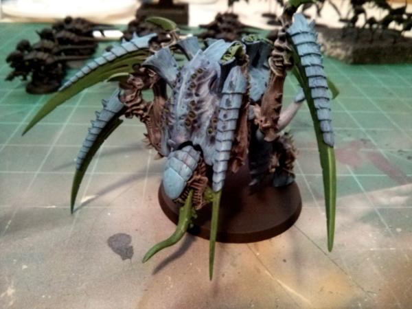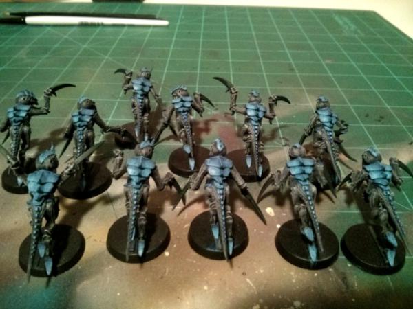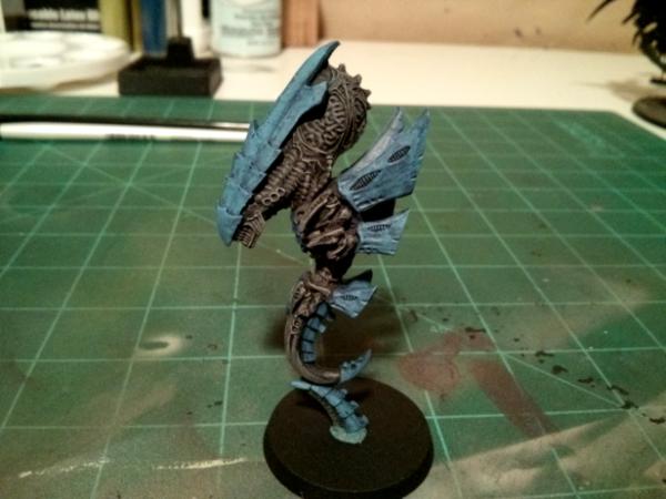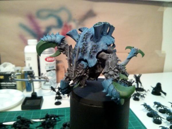 It is pretty basic as it is just a drybrush of grey for the skin, Green Talons, and layered blue for the carapace. It pops on the table and looks good all around. I am happy with my tests so far and have decided to stick with this scheme.