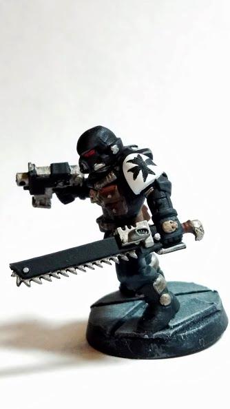 looks good, but IMHO the helm is to iconic to standard marines, I'd go for some sort of veteran IG helmet or a 3rd party one with visor