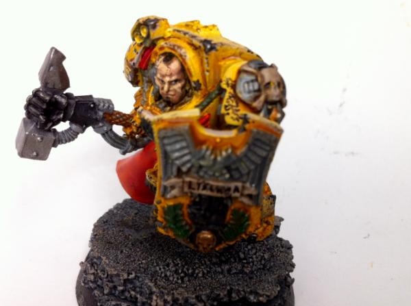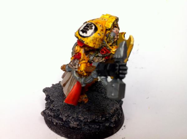 while digging through an inherited bitz box (a friend said "I'm out!" and handed me a rather large tub o bitz) i dug up enough parts to make this lysander model. I needed a good excuse to try yellow on a space marine, and this is the perfect one! Let me know what you think! The yellows (in my opinion) are mostly done, just need to youch up the other things like purity seals, the rope and robes as well as finishing the hammer.