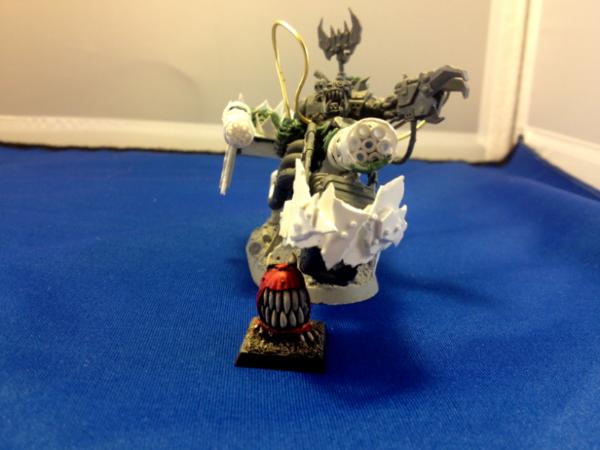 I also didnt add hand brakes. I felt it was orky. The slugga on his back on the power klaw side is also severed as if he forgot he was wearing his PK when he went to draw. I like modeling a little idiocy-comedy with orks myself.