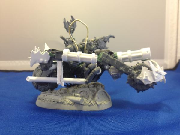 Yup. Went for a cartoony ape hanger look, mixed with a bicycle. Previously did a comical painboy biker with a grot surgeon/operating table (who had a grot sidecar gunner) and was makin this guy to match theme.