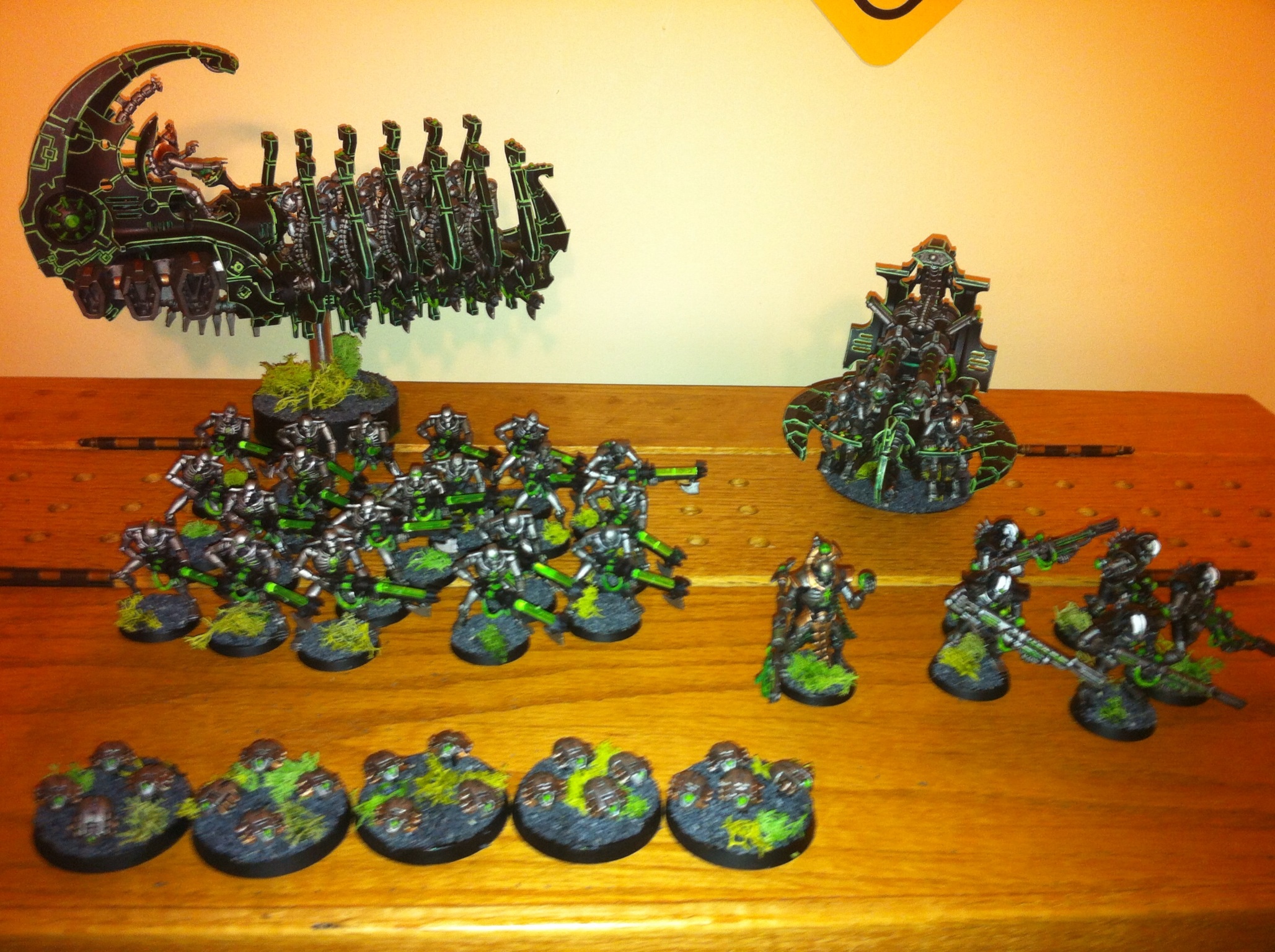 I'm a noob so be nice lol. This is my first go ever at painting miniatures (and posting on here!). It's a battleforce plus annilhation barge and overlord. I'm hoping it'll be a good 750ish point army. Comments and suggestions welcome