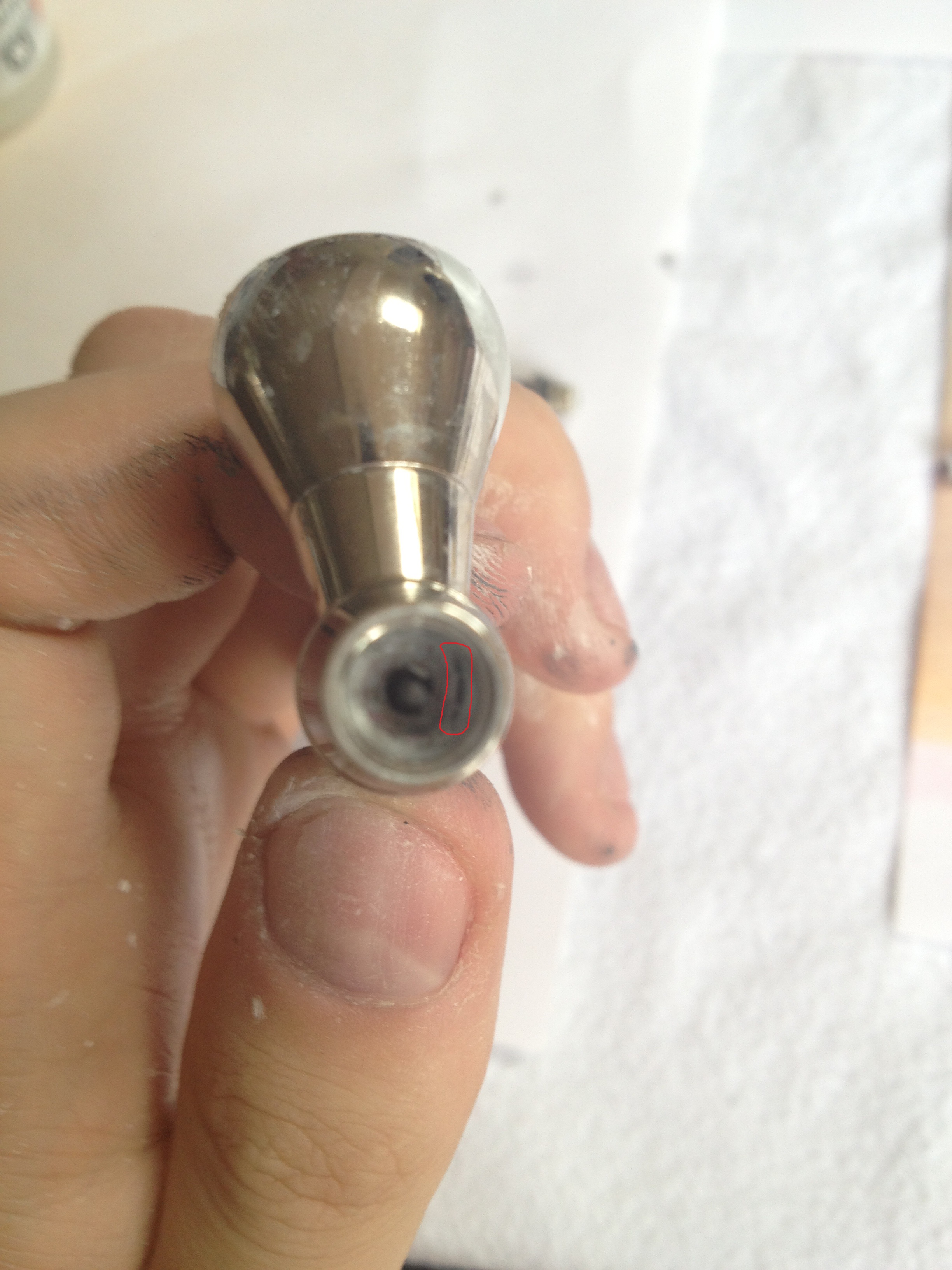I was cleaning my airbrush out today after I'd just finished spraying some Tau and I spotted which looks like a hole or a crack inside.