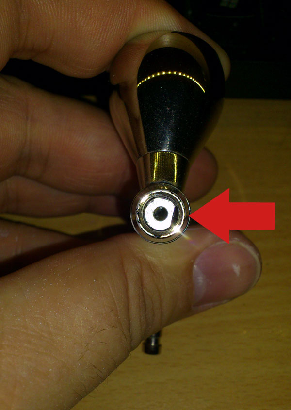 I've just taken a (bad) picture of my perfectly working airbrush for you to compare yours to.