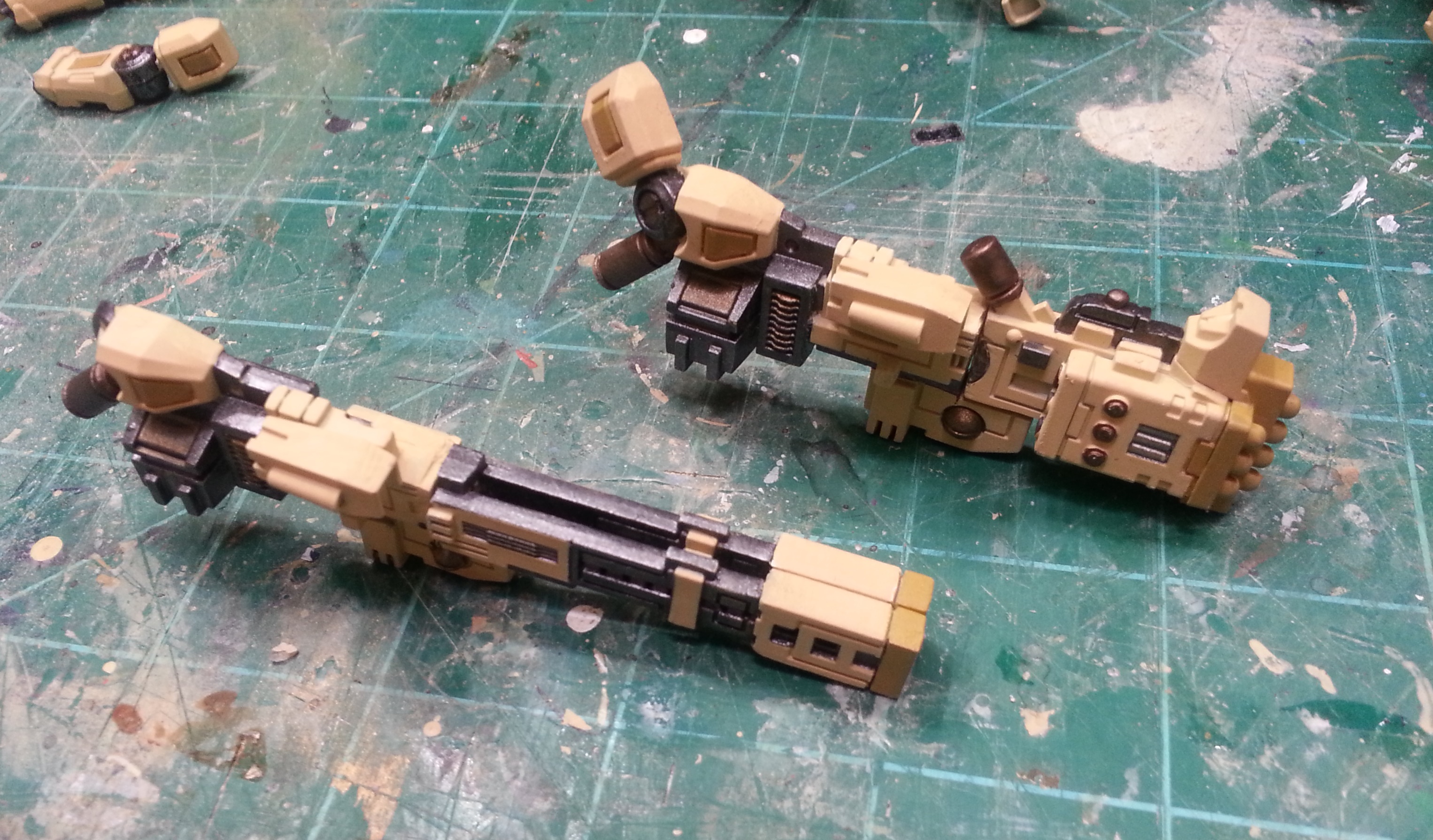 Basically, I cut the main Heavy rail rifle at a place where I thought it would be a good joint, and a missile fist thing would not look out of place on it.