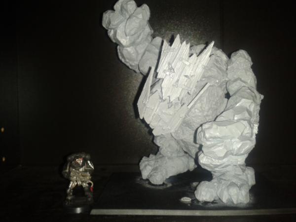 And to really show off its size, here he is with one of my iron hands marines (who is a head height taller than a basic marine anyway!)