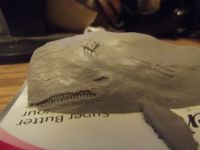 Well he is still rough and this is day one but here it is my battle whale "It is suppose to be semi comic/scary. Kinda like the villians in ninja turtles just pure awesome lol