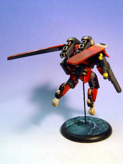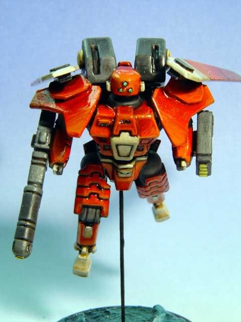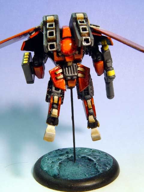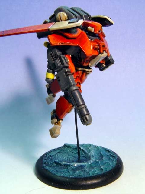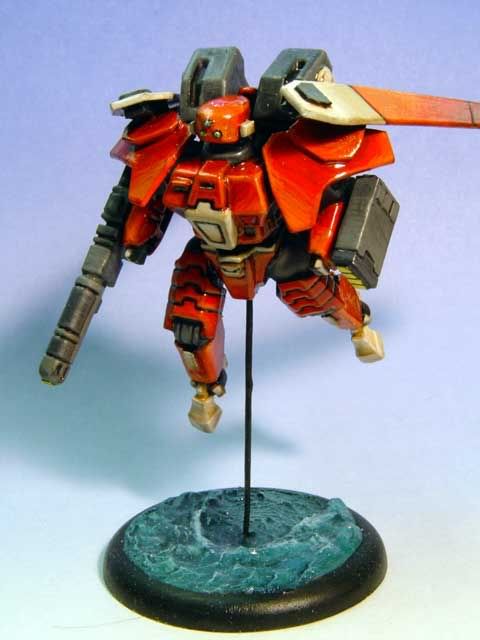Hi, Posted the WIP of this about 2 weeks ago. Finally got round to painting him up and photographing him. I went for the high-gloss look like the model that was my inspiration. I attempted to do a candy coat, but failed miserably due to the lack of an airbrush. The gloss is simply automotive gloss varnish while the mechanical parts received a coat of matt to reduce the level of gloss present. The base is supposed to be water, but I haven't had the chance to bug any females for their nail varnish yet, so it stays not-glossy-enough for now. I wonder if I should decal the model...