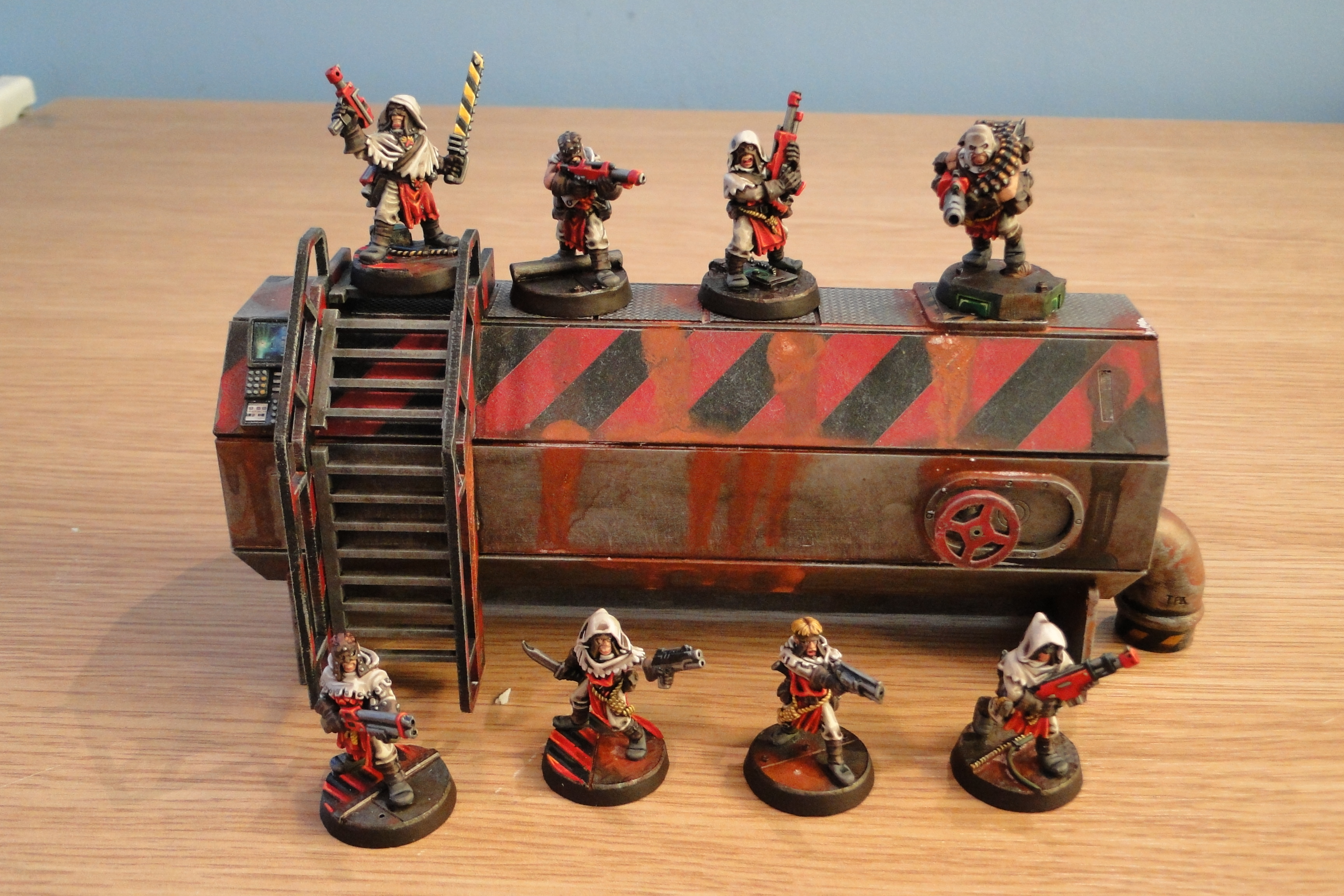 Led by the nefarious Brother Bacon Slicer, the Brothers of Pie are here to claim their turf. Starting a Necromunda Campaign soon, so here's my Gang Entry. Now just got to finish the table!