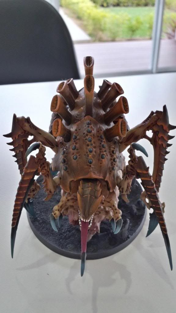 This was my test mini. Was a bit dangerous to start on the best looking model in the army but i wanted to make sure it looked good on the big bug as the little guys can look underwhelming in dark colours.