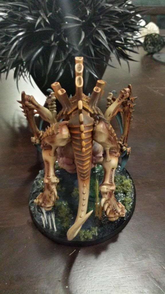 well did my 2nd hive tyrant and tervigon done today. got the tyrant from sprue to tabletop in under 4 hours. just my pods a doom and a fair handfull of spawning termagaunts to paint.