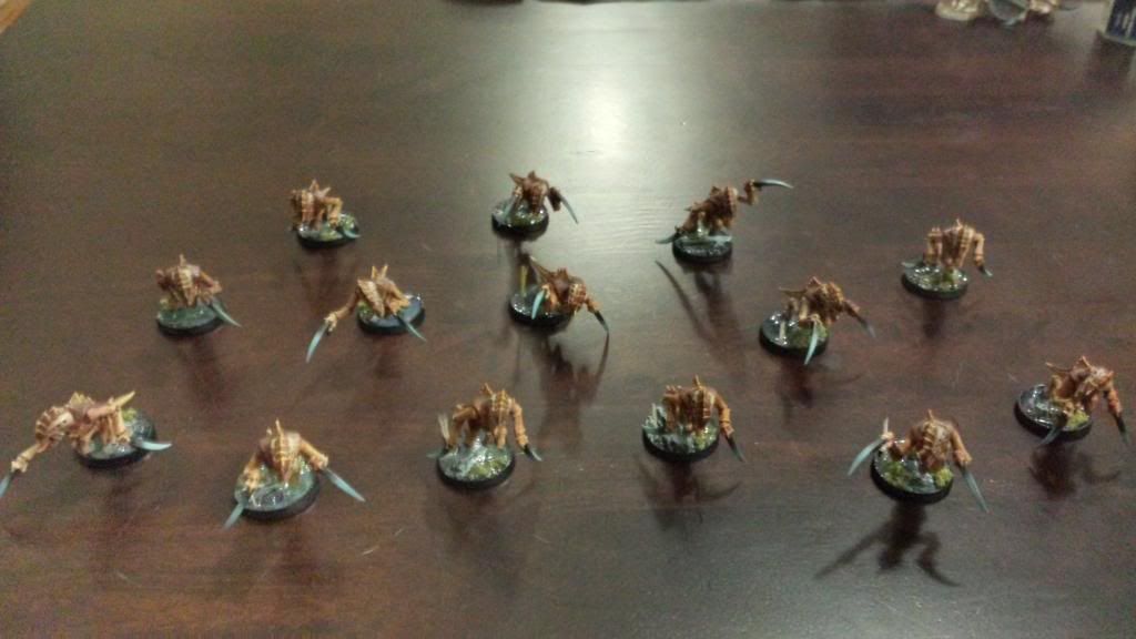 Just some m.ore progress. 15 hormagaunts. I've run out of bases so i have only done 15/24 but am only using 15 in my current 1750 list