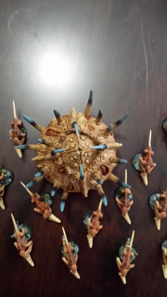 Anyway have smashed out this spore pod. their is alof of skin so have tried to add colour with the carapace and along the side spines. The blue really stands out on this and matches in well with the talons on the other MC'S