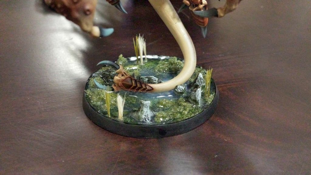 I will go back over all the mins to do touchups and i had not though about the bases and doing riples. that will look good. the small bases are fine but the trygons base does look a bit flat compared to the tyrants.