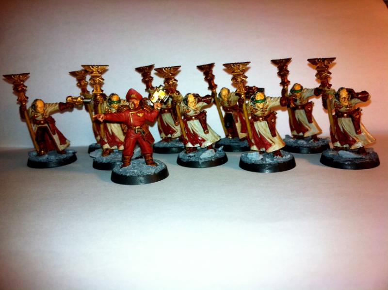 Thanks in advance for any critiques, comments, and constructive feedback. I'm not the best painter in the world but I'm very proud of how this army has shaped up. Once I finish off the vehicles (2 chimeras, 2 griffons, a Leman Russ, and a pair of Vendetta Gunships) I'll be ready to rock.