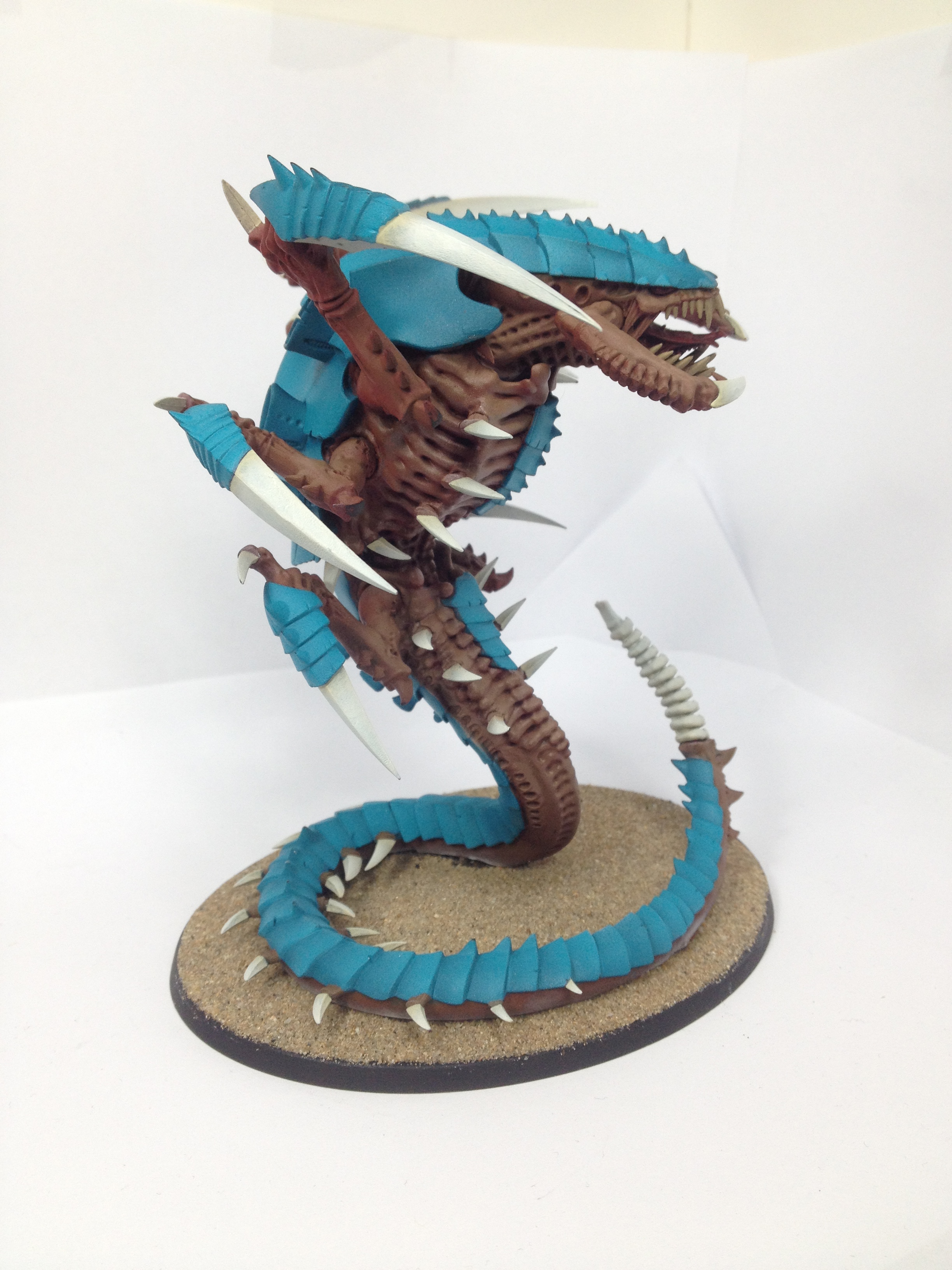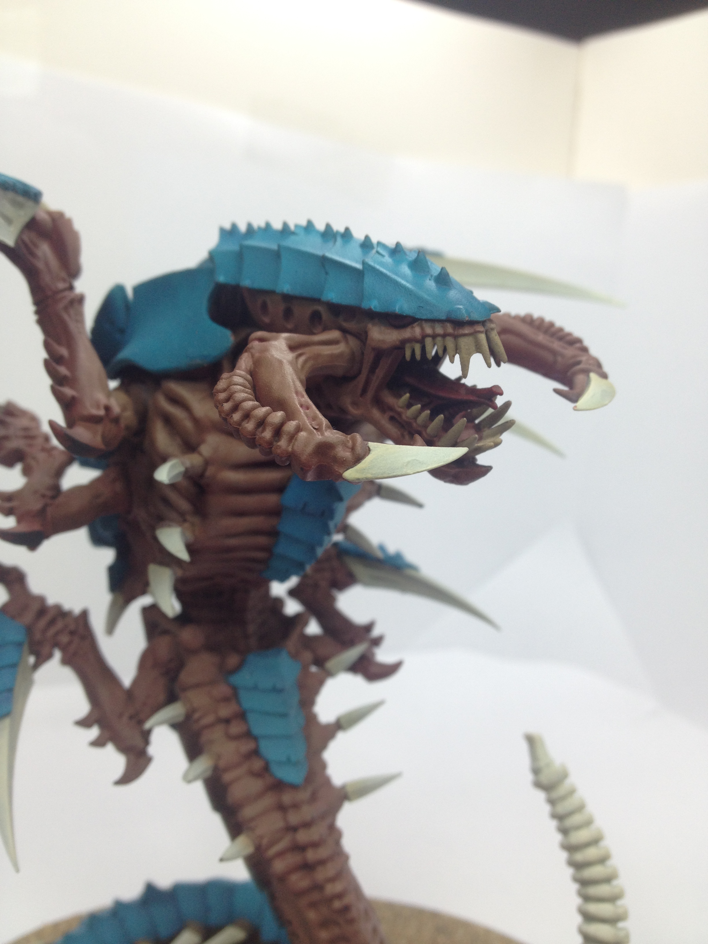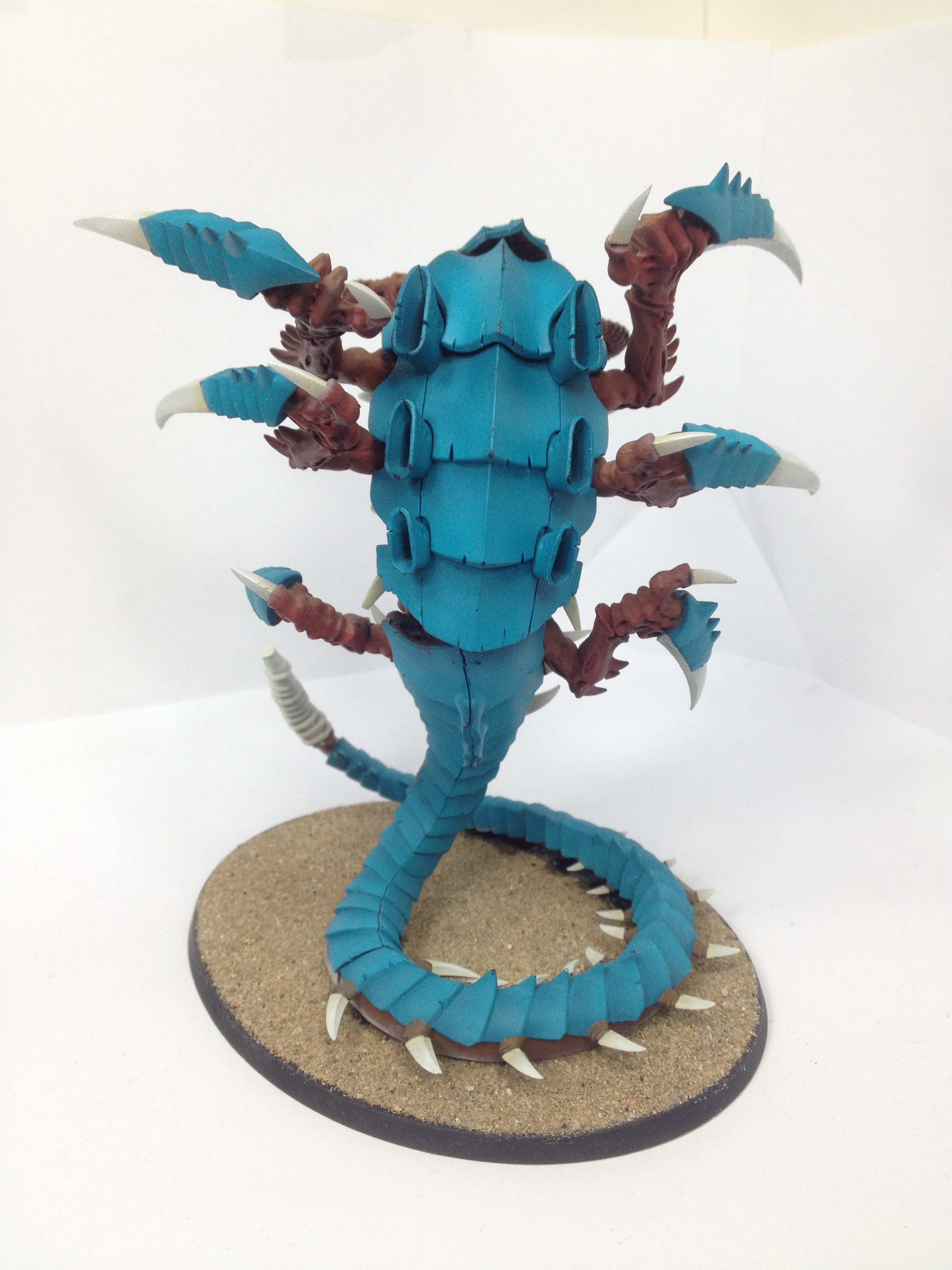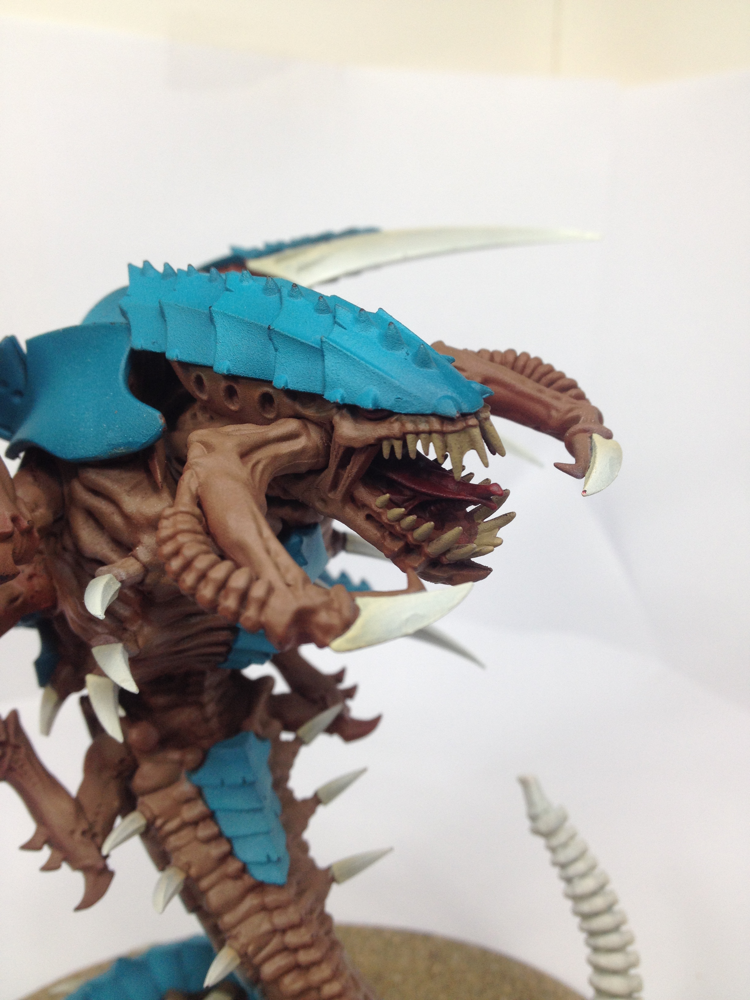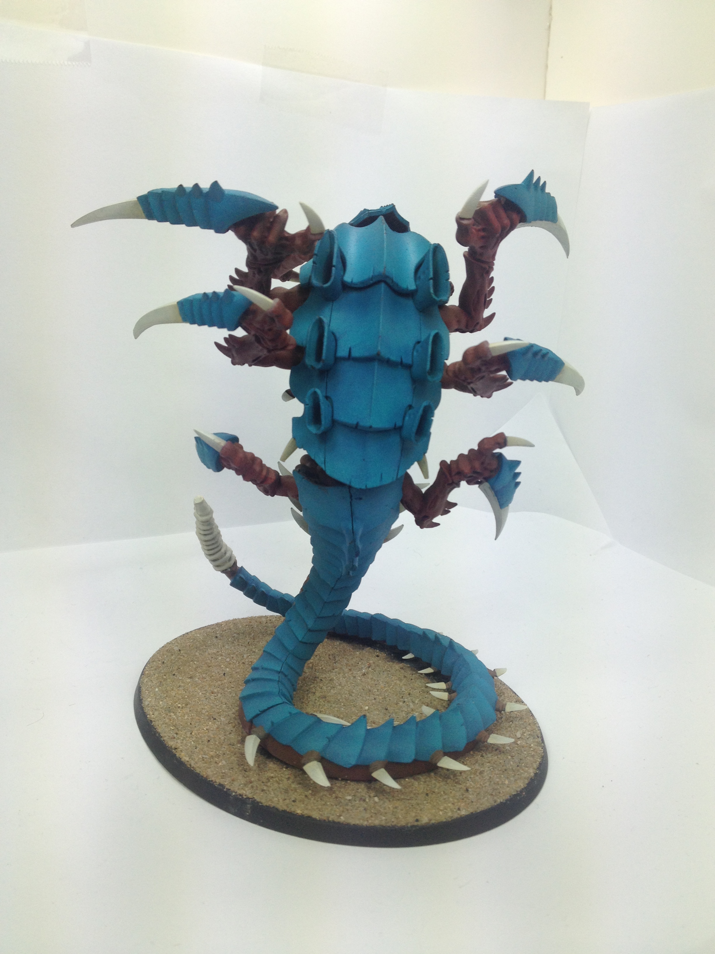 Hit the model with a few washes, Leviathan Purple on the carapace, Baal Red on the shin/everything else.