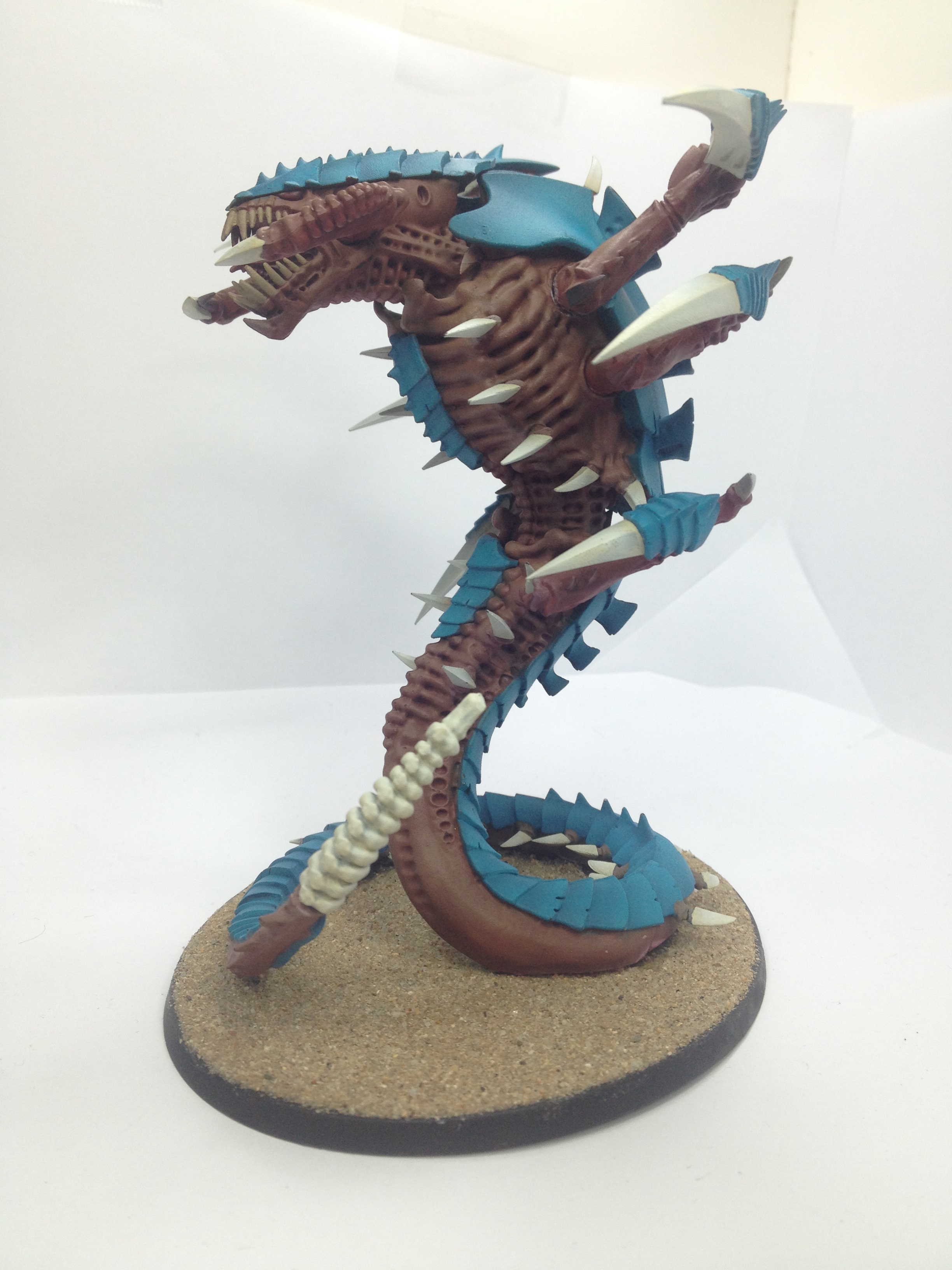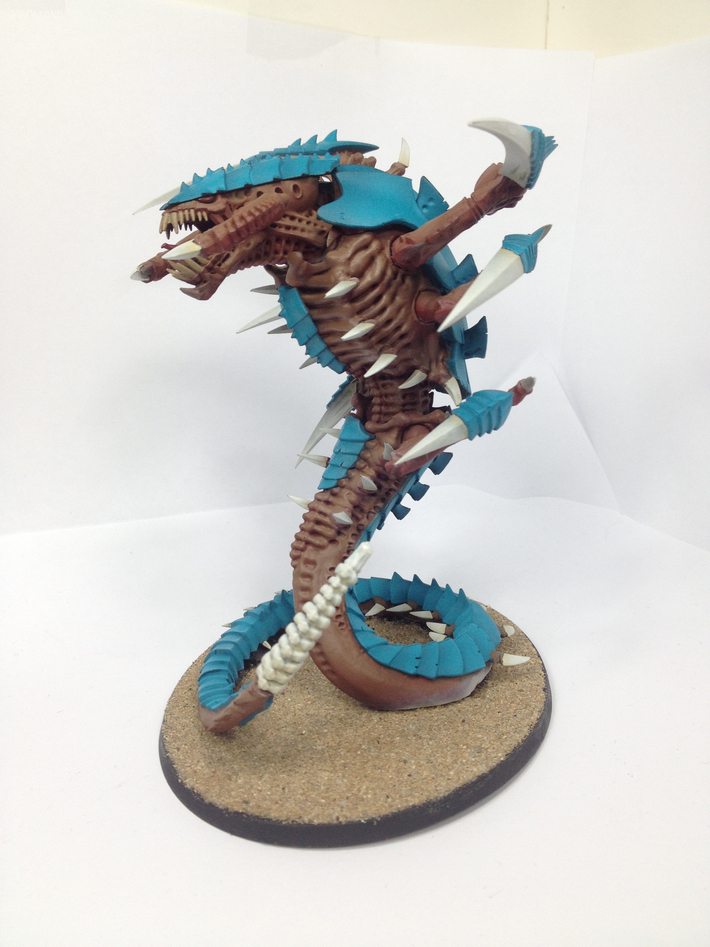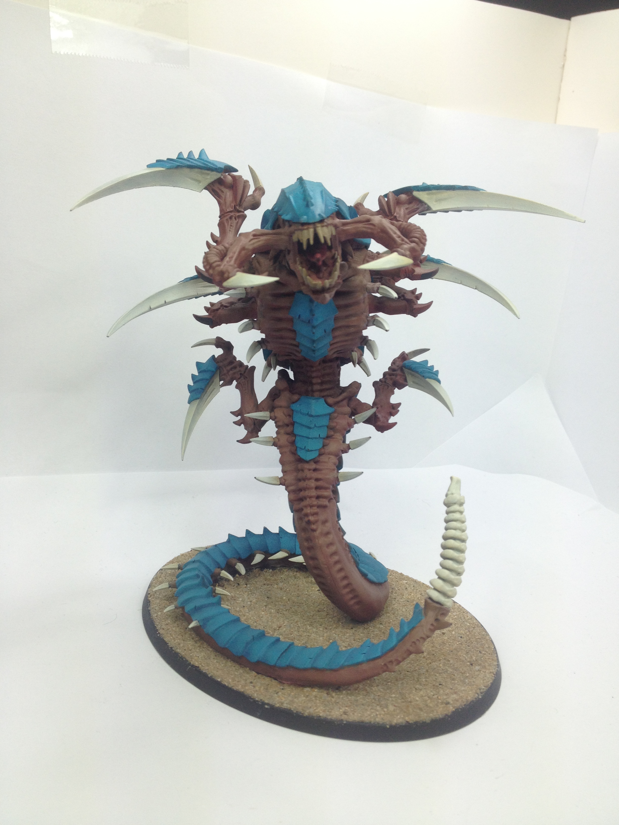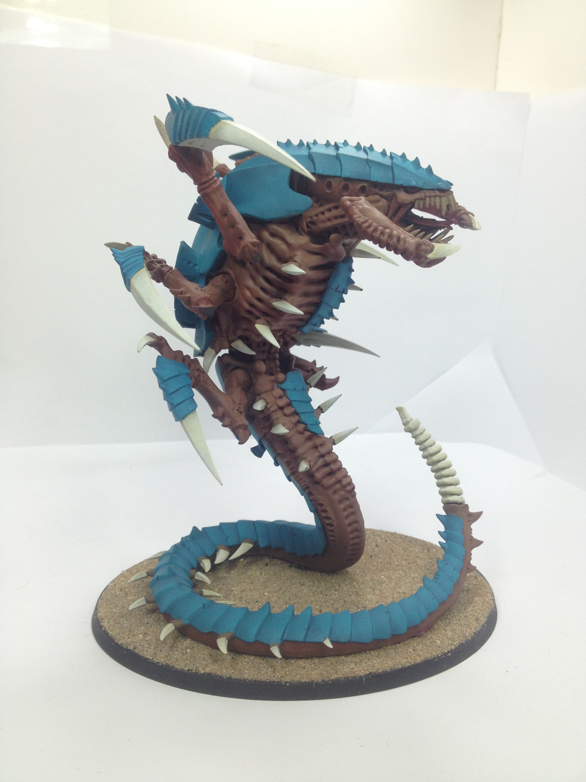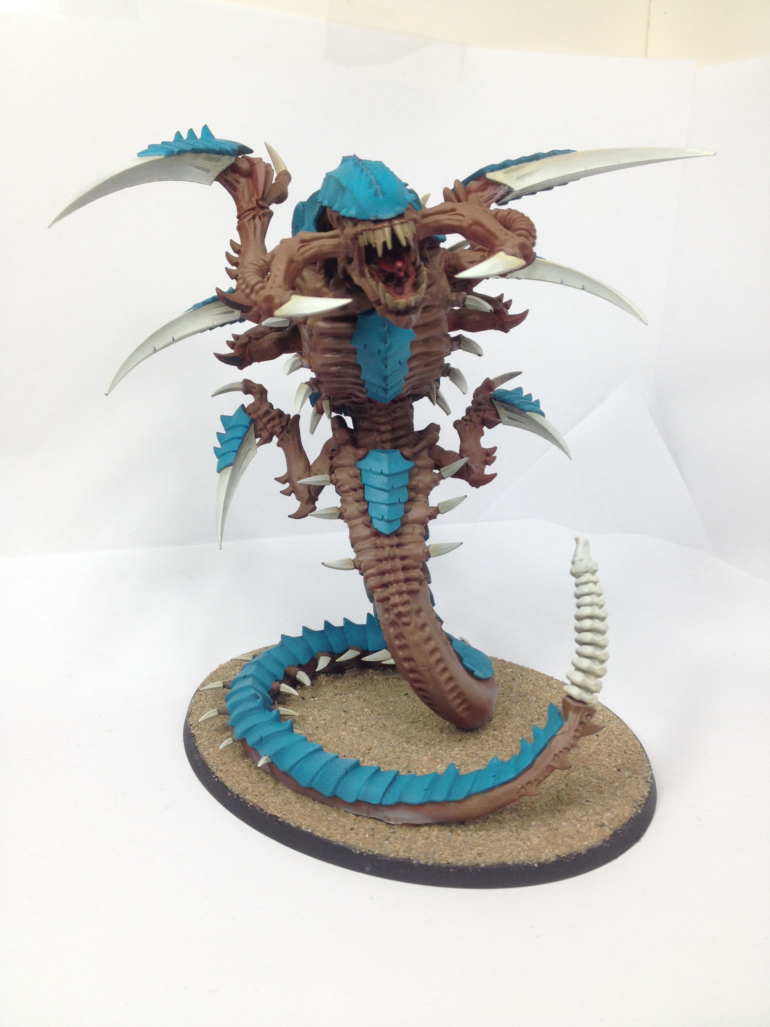 Hit the model with a few washes, Leviathan Purple on the carapace, Baal Red on the shin/everything else.