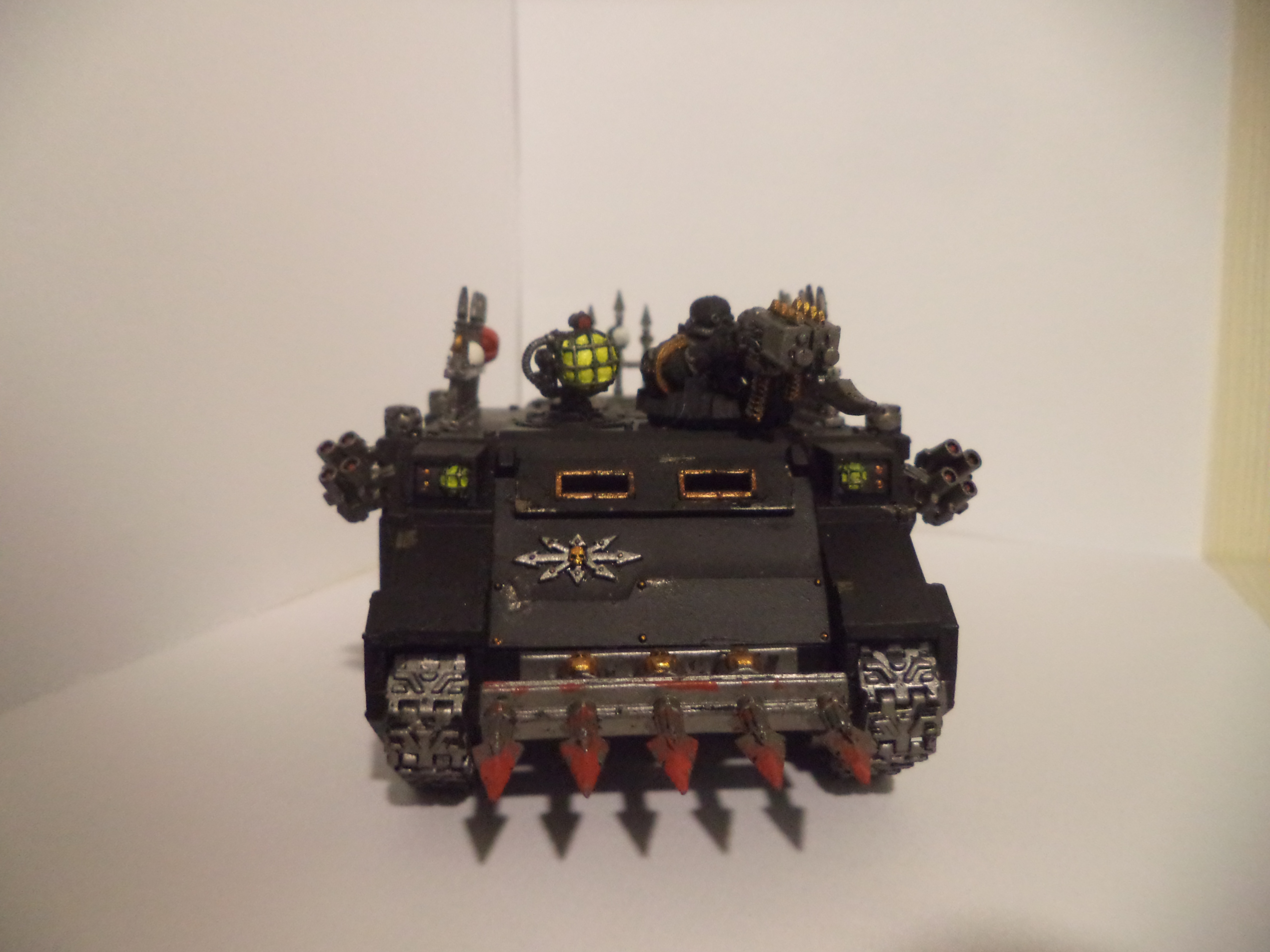 My Black Legion Rhino. Criticism more than welcome! I want to improve after all so be as harsh as you want. No one in my family knows about miniatures so they all tell me 'It's great' which doesn't help at all. I can't preview photos, so hopefully they're not too big.