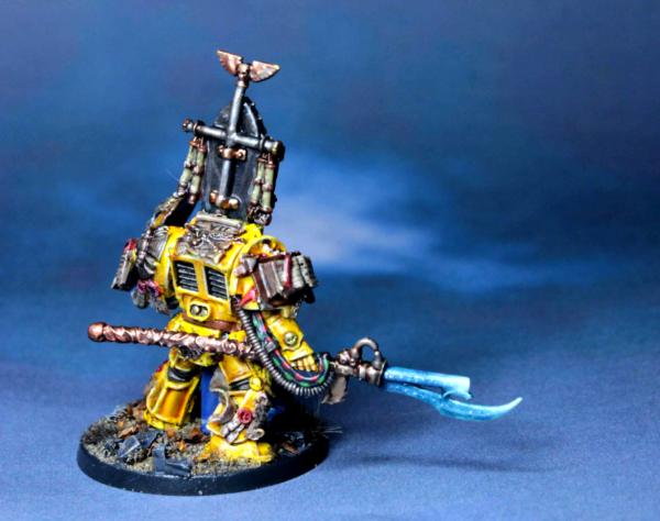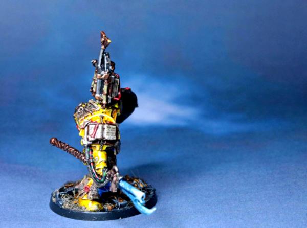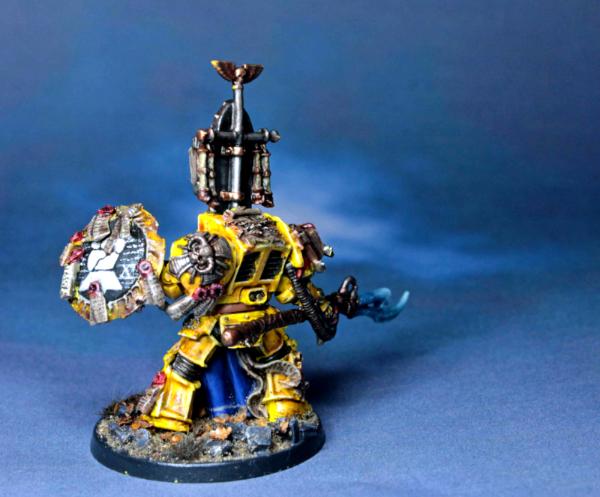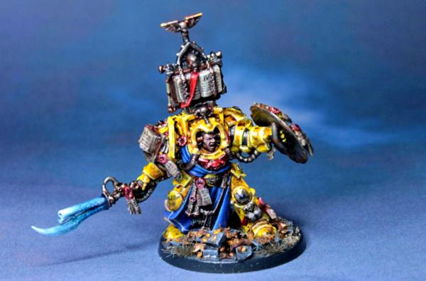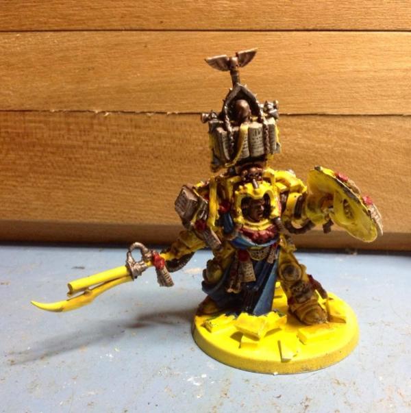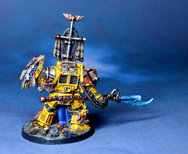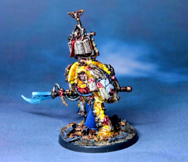 Huzzah for Librarians whose robes are blue where their armour is not. I really like the contrast between the lighter, more turquoise blue of the force weapon and the deeper, richer blue of the robes. Perhaps a slightly brighter edge highlight on the yellow armour?