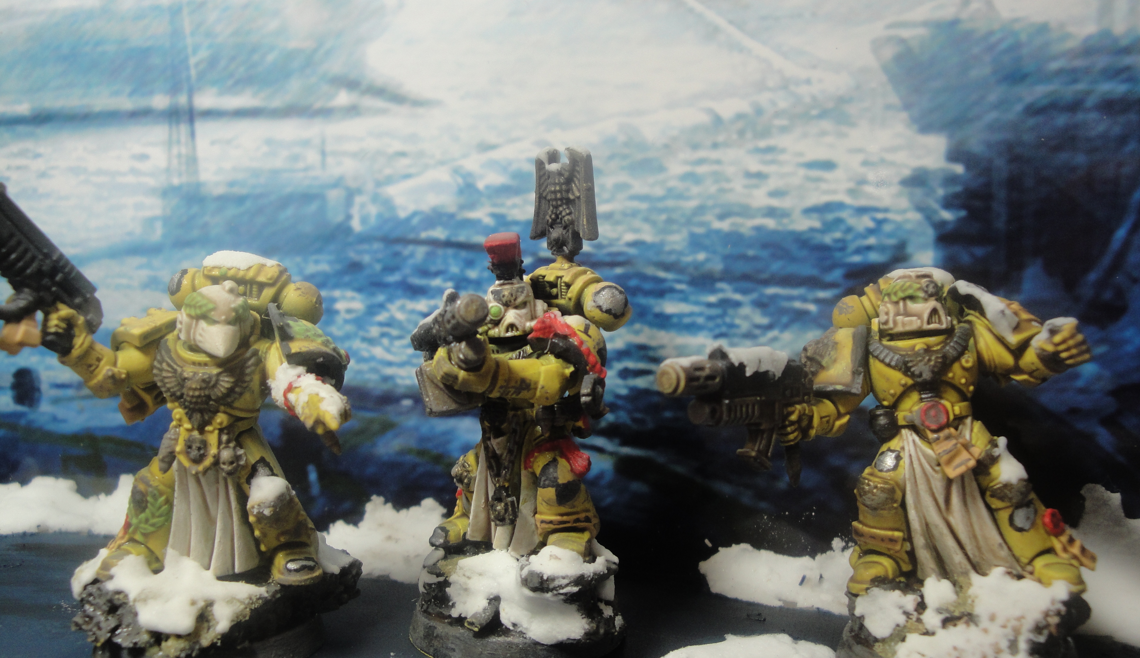 The theme is that these guys have been stuck on an ice planet held by the Iron Warriors and have been performing guerrilla strikes against them. They are a bit banged up and worse for wear.
