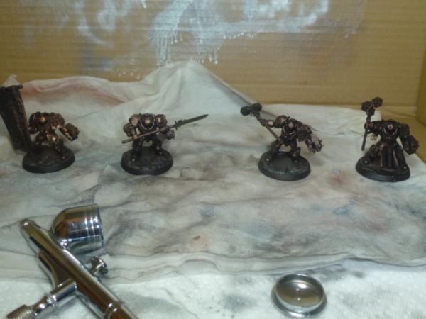 First off, I'll be working on my Terminators. I aim to have most of my army magnetized, so if something is missing from a model, that's why. I'm using the Zenithal highlighting technique for the first time, on these, and am very pleased with the results! For the airbrush paints I used Vallejo Model Air, for everything else the