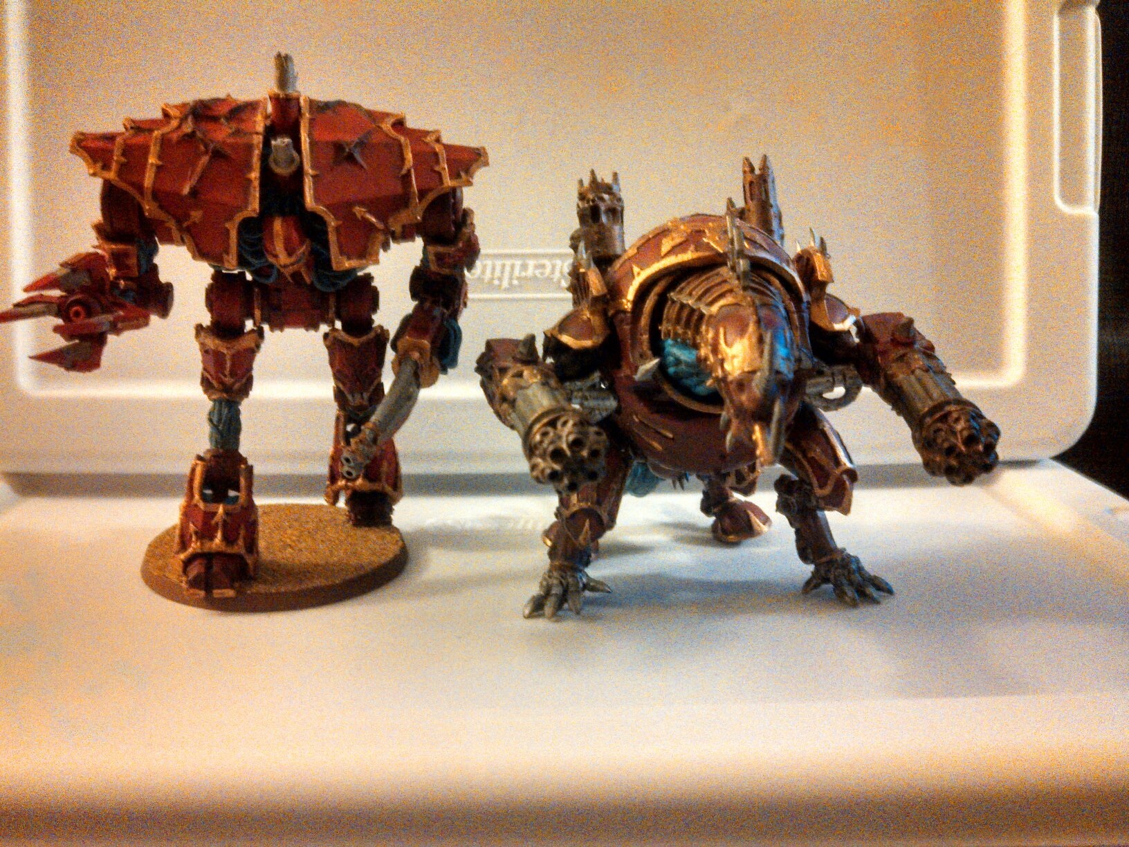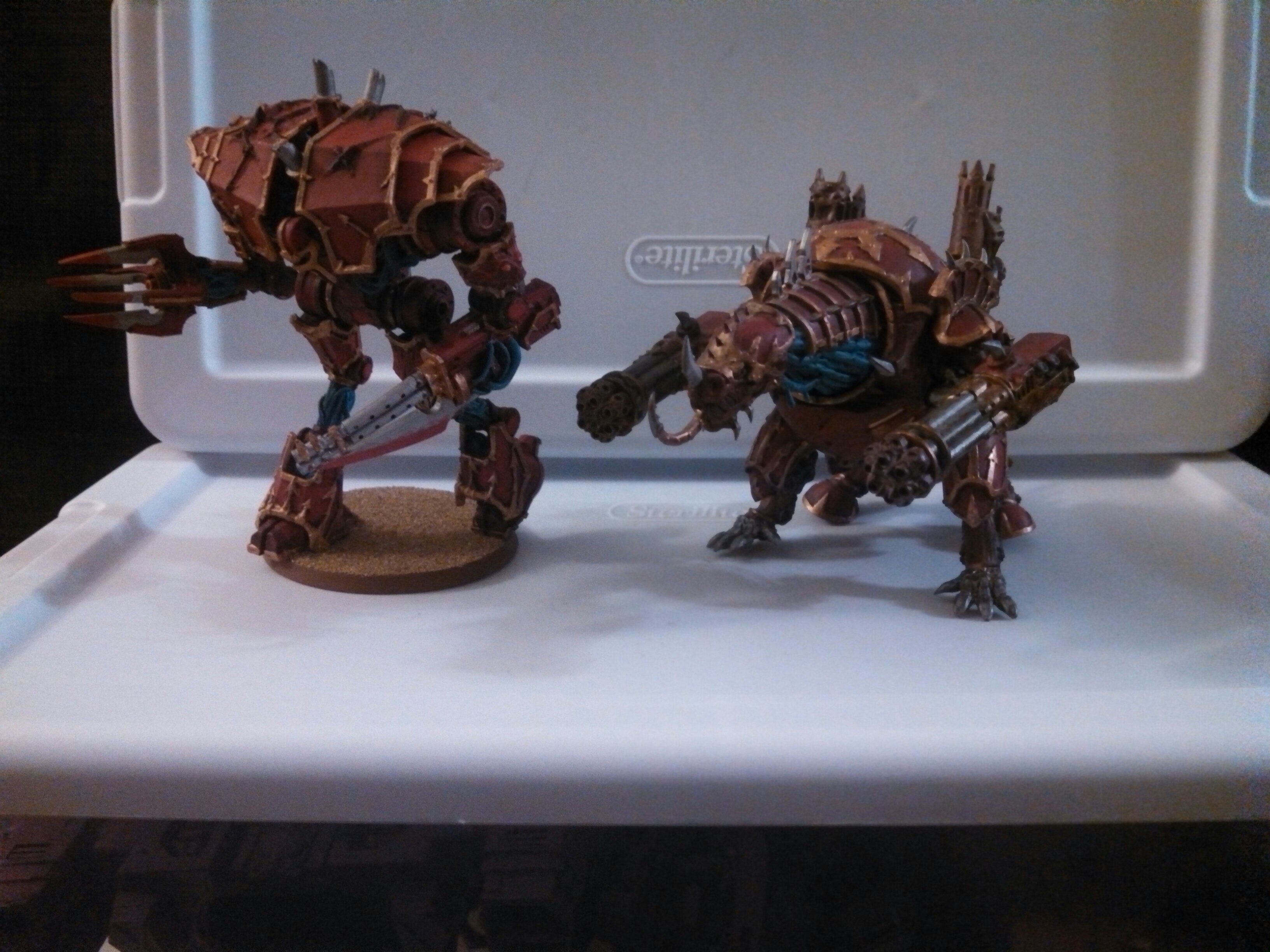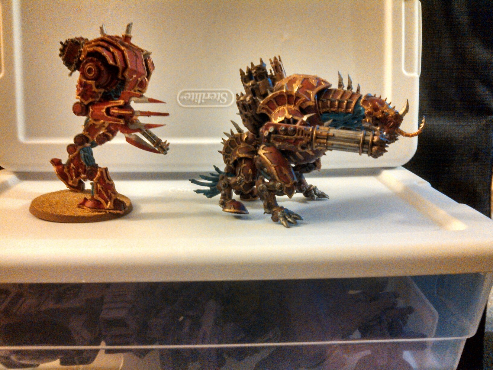 Here is that comparison of the decimator next to the forgefiend. The forgefiend is closer to decimator height than I was picturing and if built properly they're probably the same height.