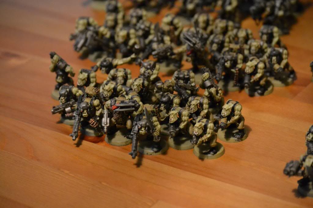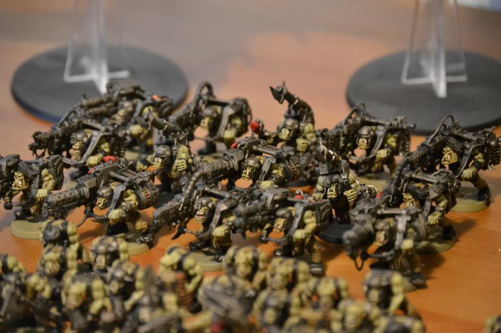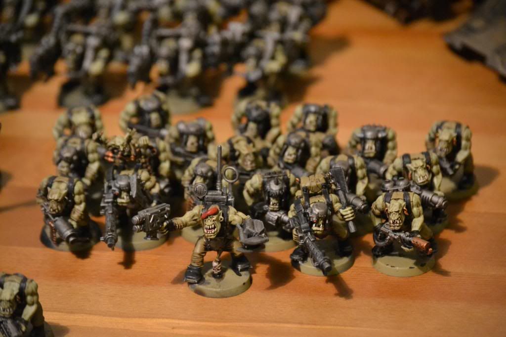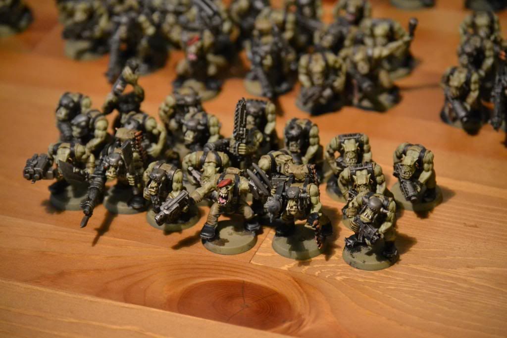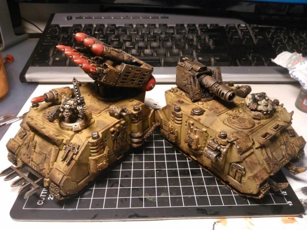 Looks great! I love the feel that they pretty much demolished an Imperial army and looted it for their gear, looks way better than some of the boxy stuff orks usually have!