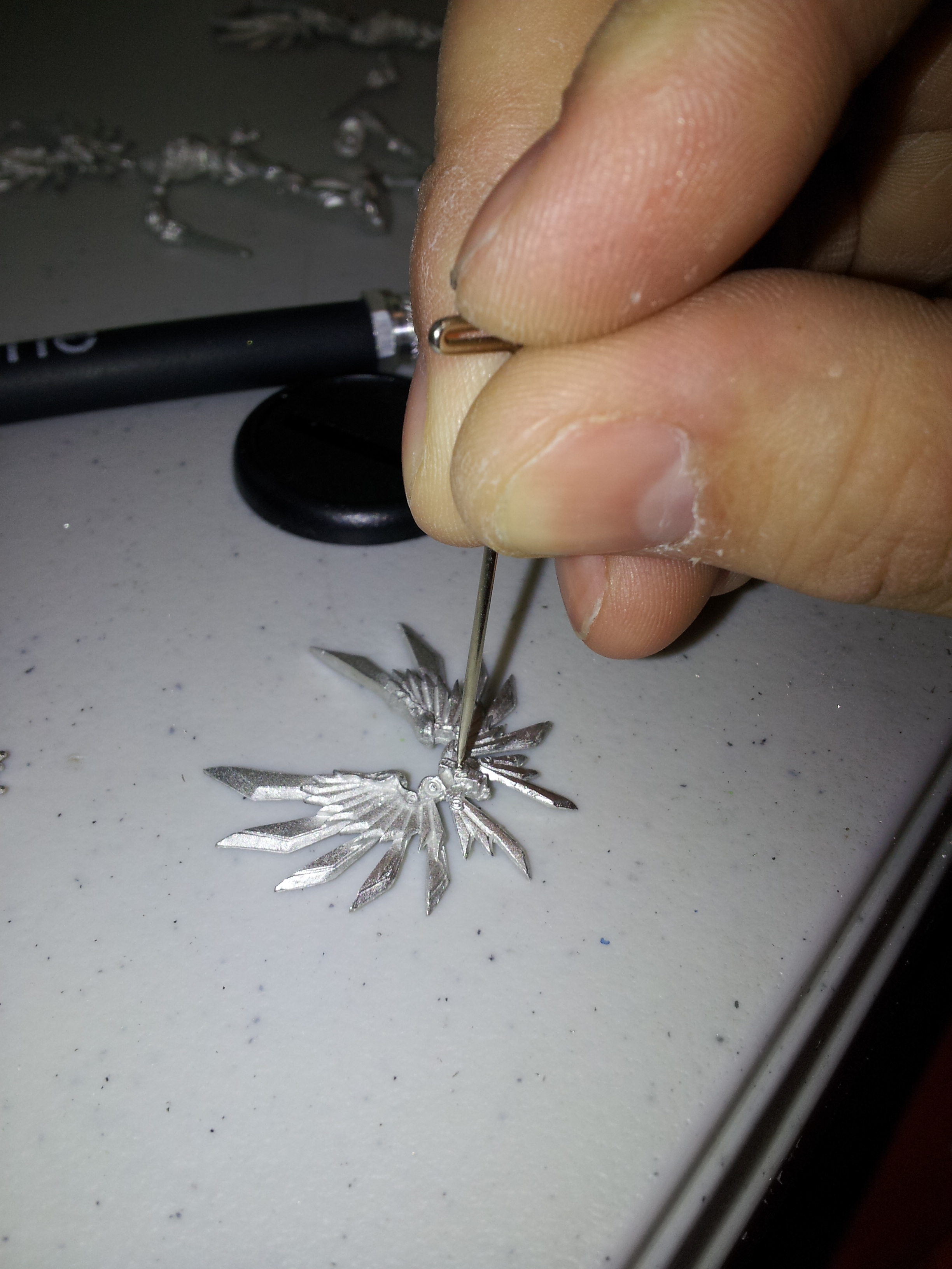 Hello. I will just show a few pictures on where to pin, and what to use for pinning something with tiny contact points. Pinning these various limbs, weapons, and etc will save you a lot of headache when one takes an accidental knock.