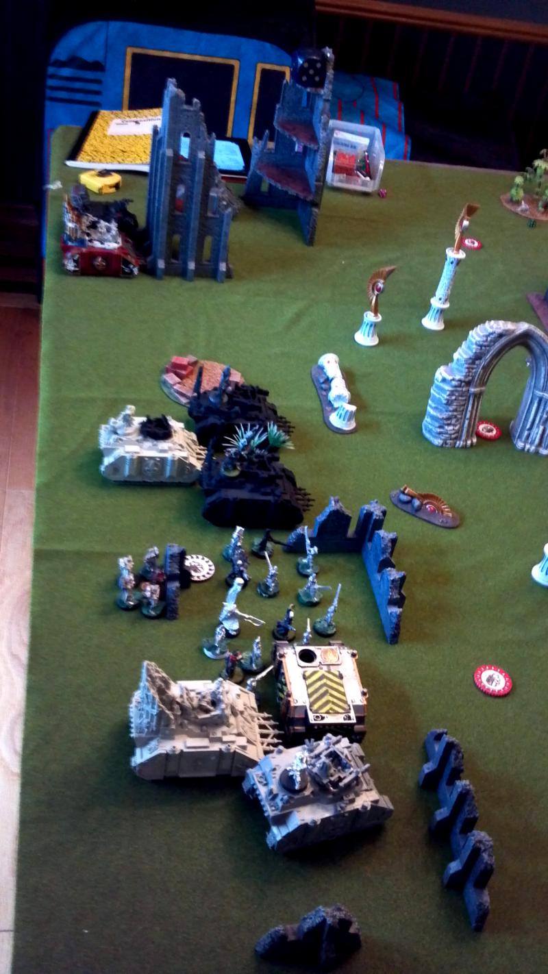 HQ and Repentia to help out the commander. The Ethereal joined the other broadside team. The Pathfinders moved to just in front of the Aegis line and the other squad of