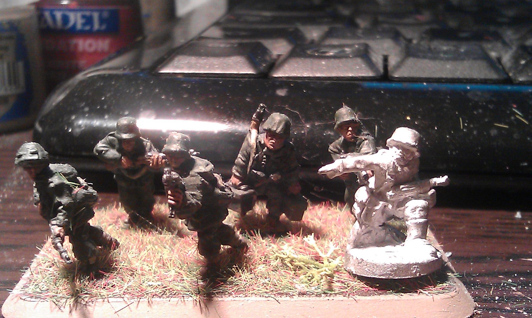Just cleaning up some MG42's and I have noticed that the tabs the models sit on are very thick, this means even a chap kneeling is taller than all my other guys who are standing....looks a bit odd.