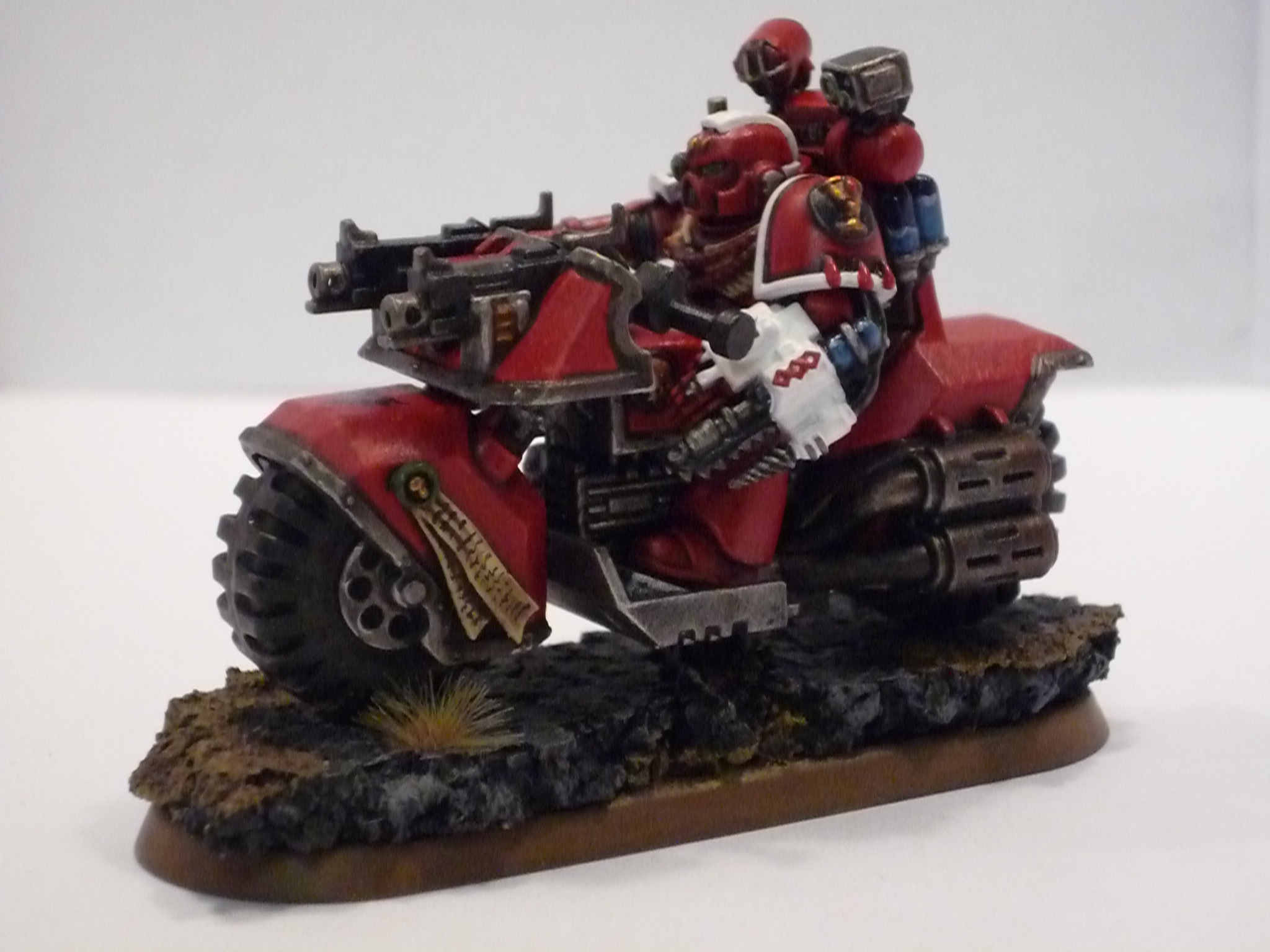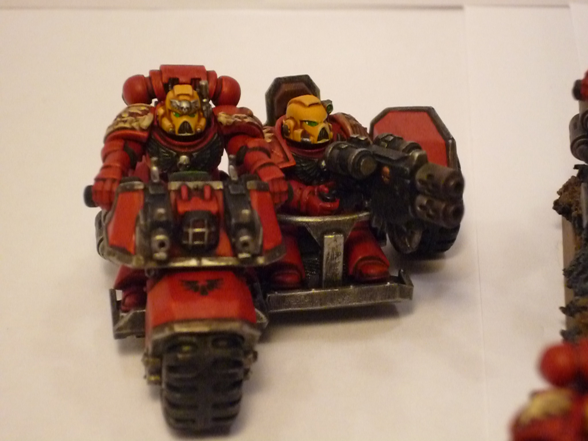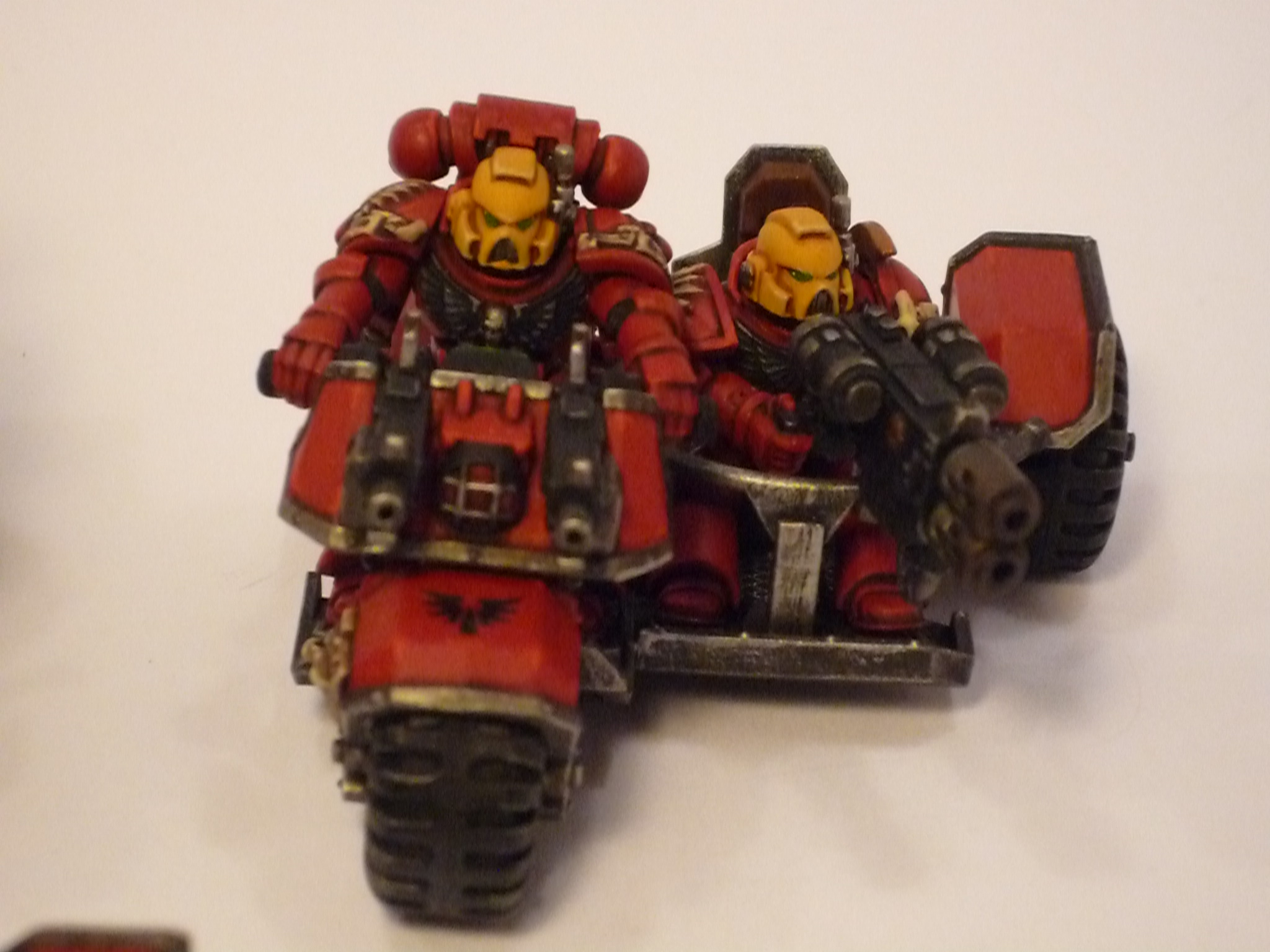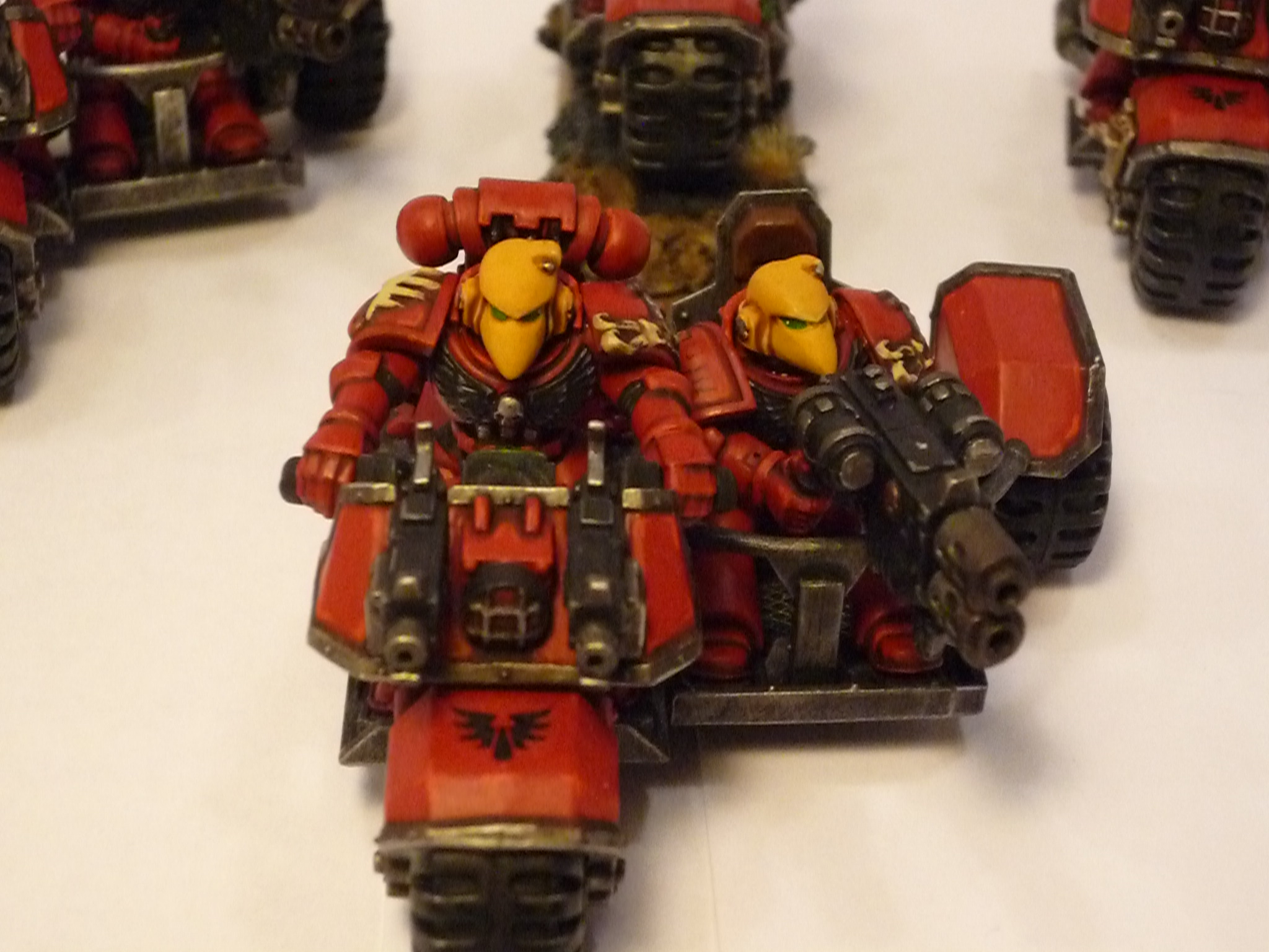 Subject: Blood Angels Sanguinary Priest on Bike with his Attack Bike Friends