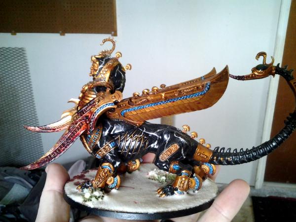 First things first, that's a Necrosphinx. At least that's what i would go with. I don't know if defilers or soulgrinders have bases yet, but i could be wrong about that.