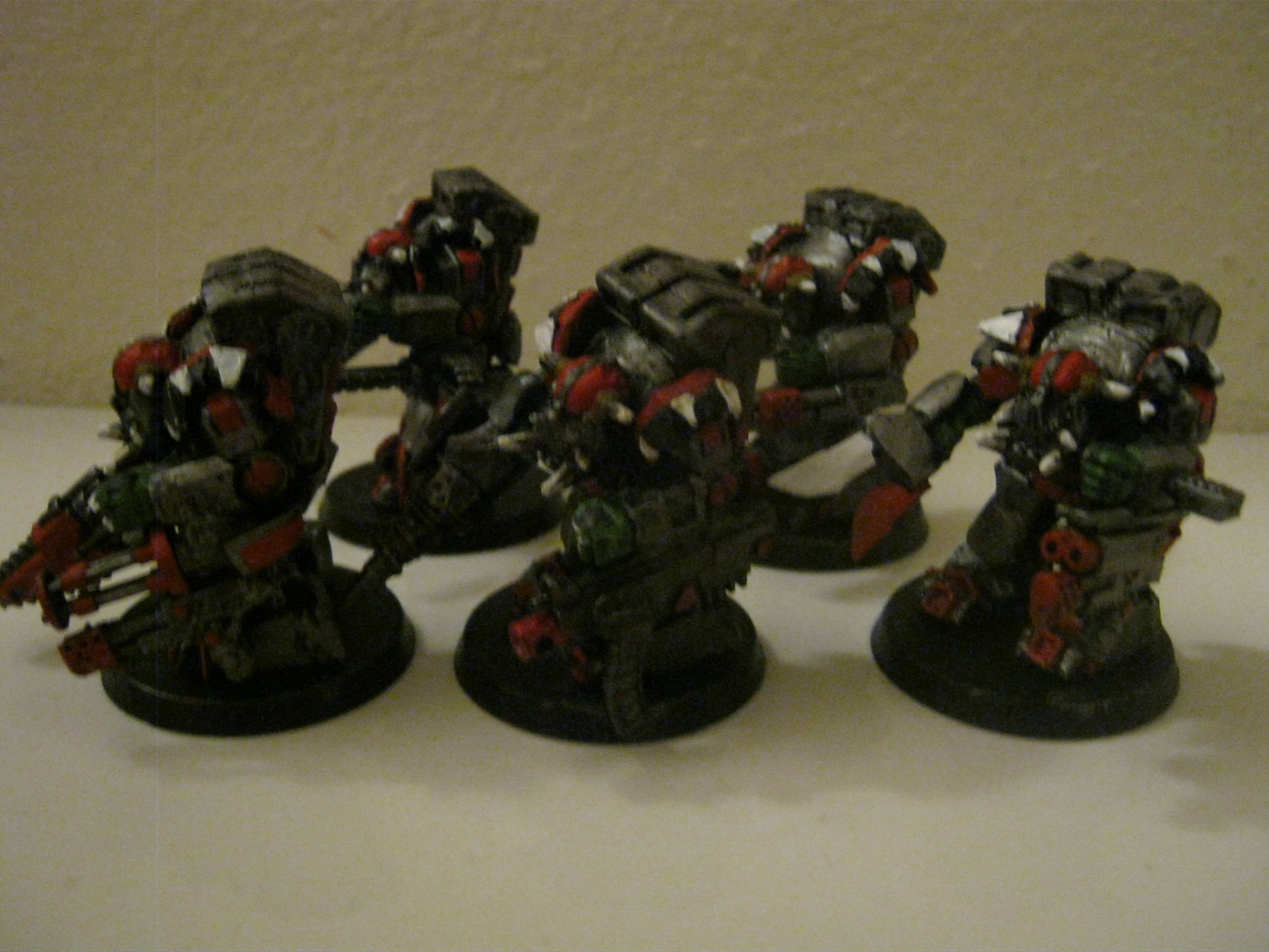 Aside from their weapons, these guys are 100 precent green stuff. I wanted bigger meganobz, as the ones GW makes were too small for my taste. Made one master, and made molds out of the pieces since I dident have enough parts to bash up 6 meganobz. used instamold, wonderful product. But I used 25 bucks in greenstuff for the equivalent of 6 centurion sized models. I probably wouldn't do it again, as the only thing that saved them from being garbage is lots of cleanup, painting as well as I could to hide minor flaws, and the fact that ork stuff is supposed to look junkey.