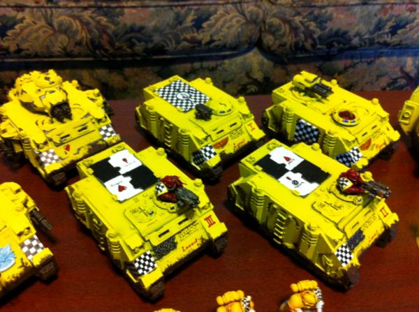 The vehicles were army painter yellow and the infantry were white with a casadora wash